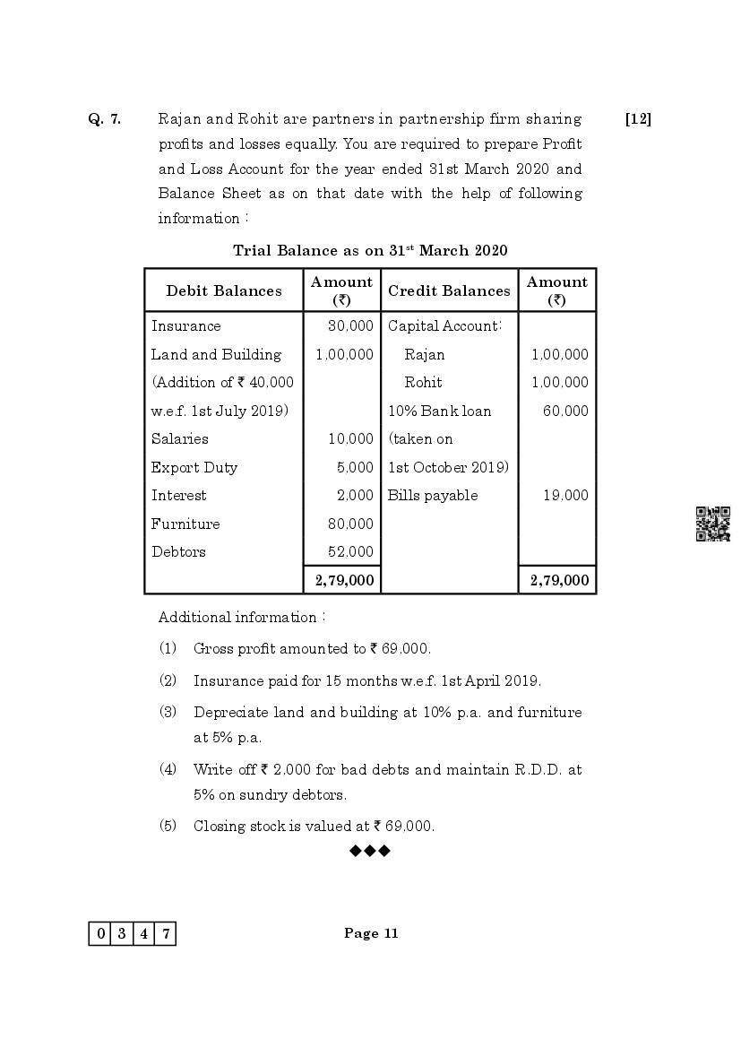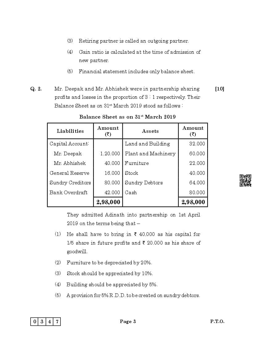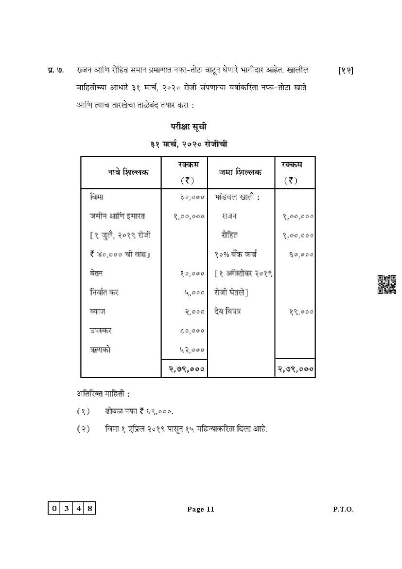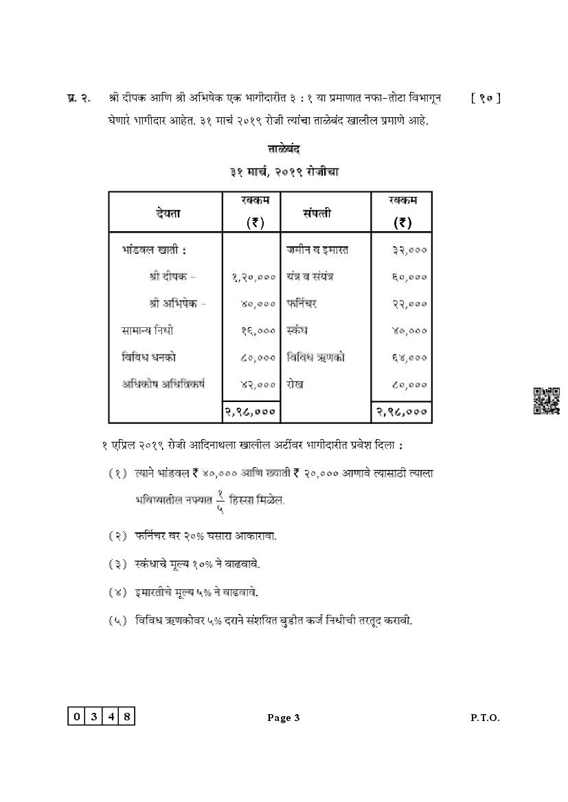 The Maharashtra Board Exam Question Paper of Class 12 HSC Book Keeping and Accountancy is as follows.
