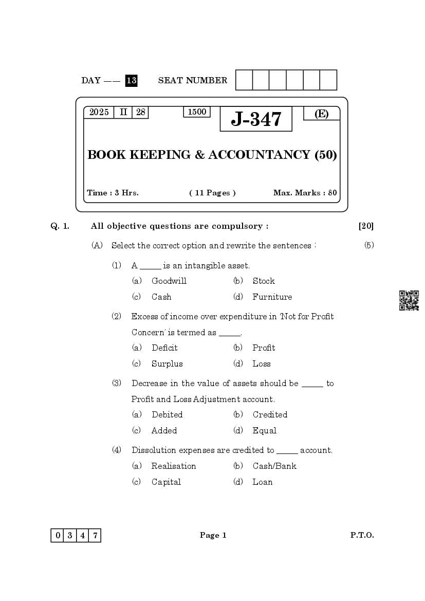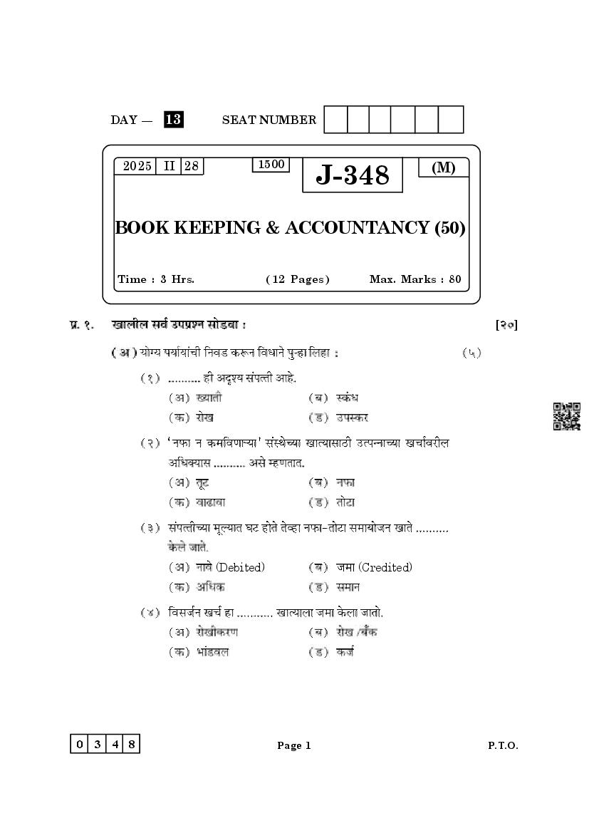 Maharashtra HSC Book Keeping and Accountancy Question Paper 2025 Download Link – Click Here to Download Question Paper PDF