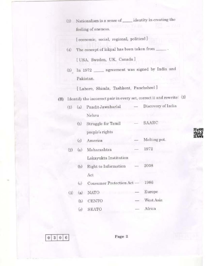 | Educational Resource Here | Maharashtra Board Previous Year Question Paper of Class 12 Political Science |