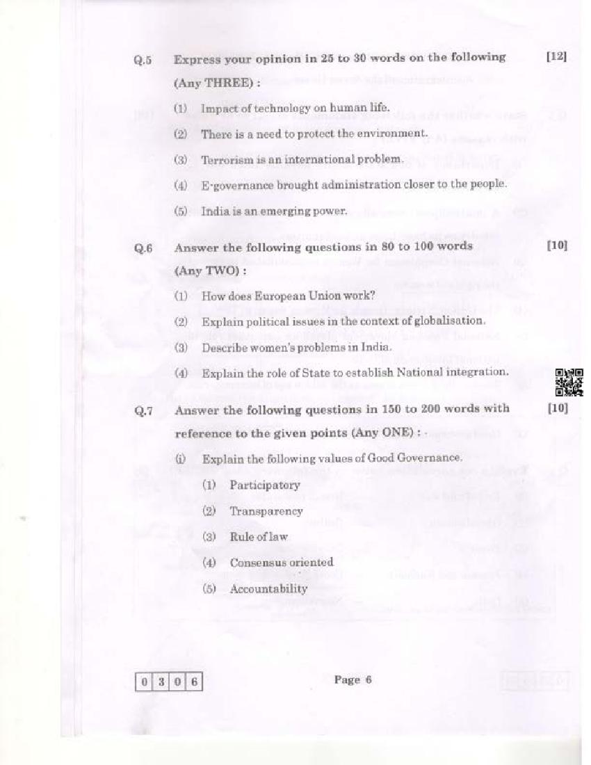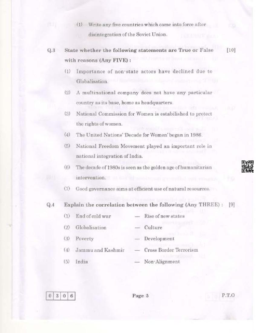 The Maharashtra Board Exam Question Paper of Class 12 HSC Political Science is as follows.