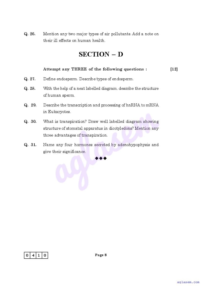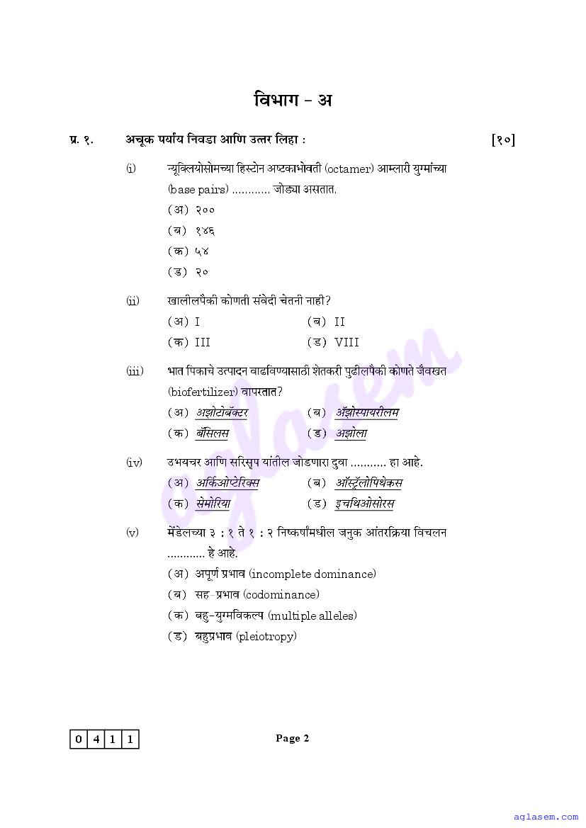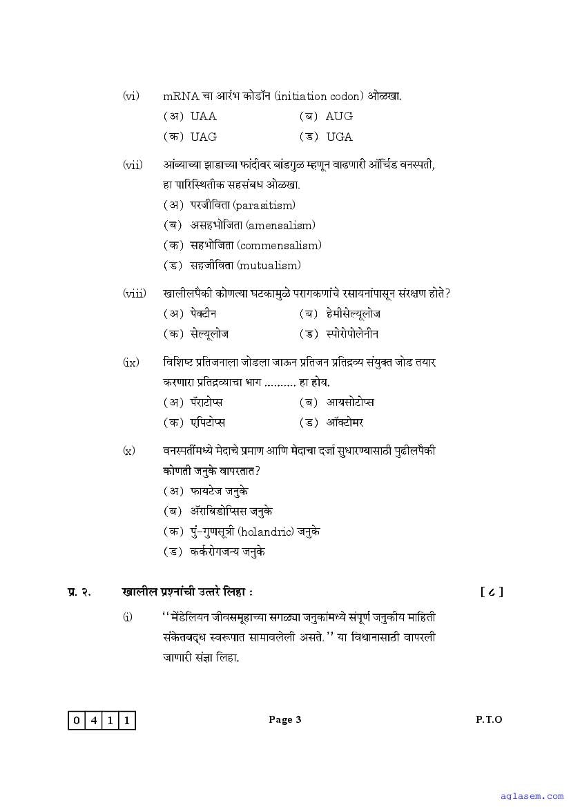 The Maharashtra Board Model Sample Paper for class 12 Biology is as follows.
