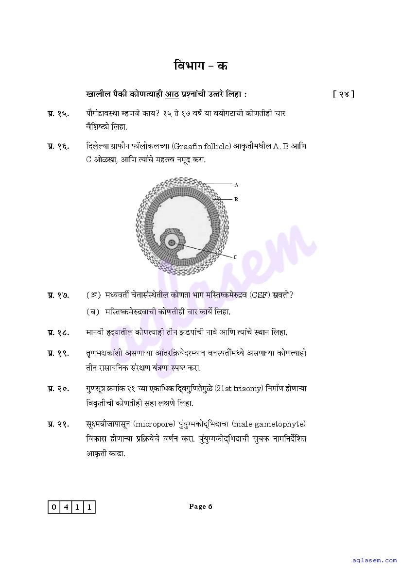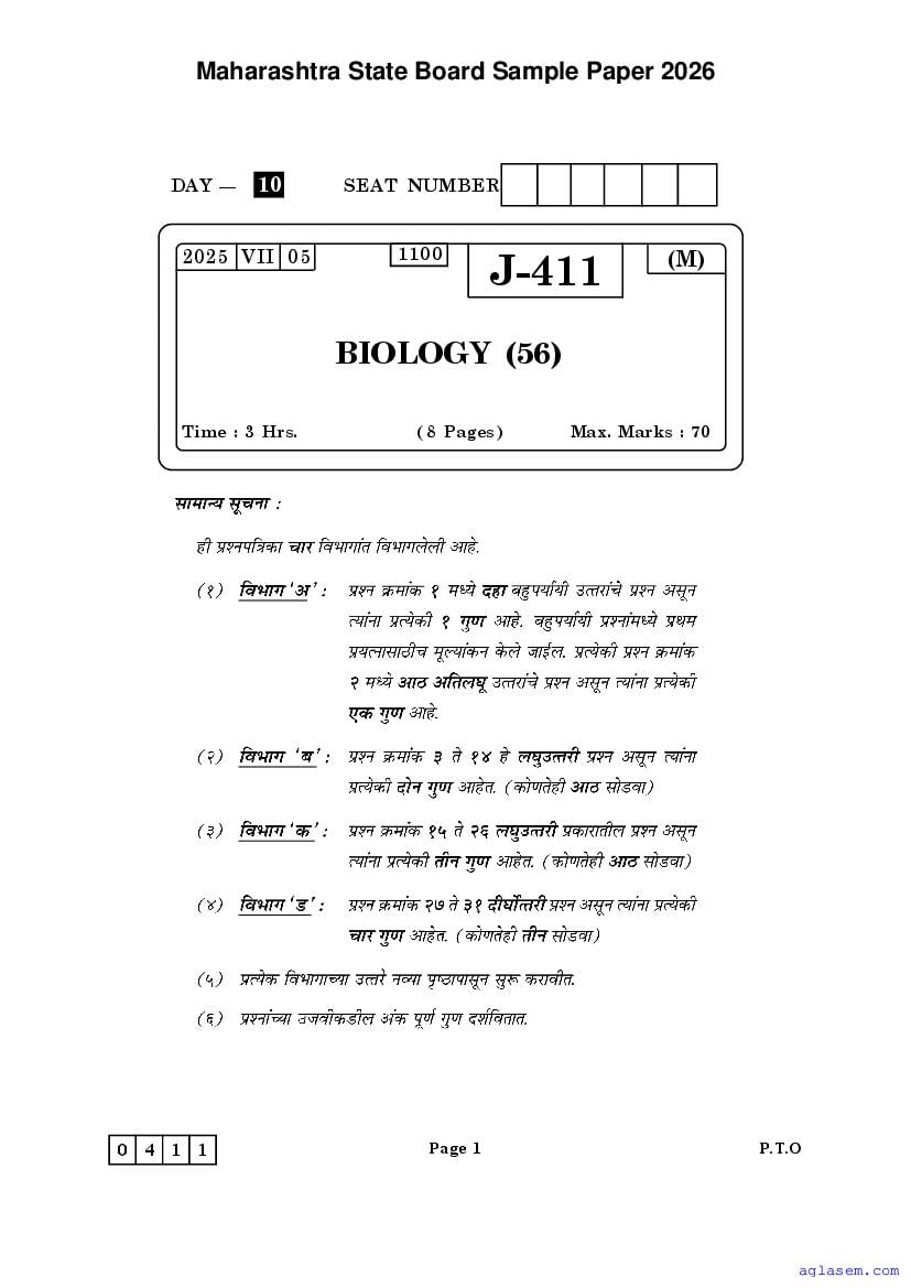 Maharashtra Board HSC Biology Sample Paper 2026 is an important study material. You can download the Maha Std 12 Biology Model Question Paper PDF here on aglasem to improve your learnings. This Class 12 Sample Paper of Maharashtra Board contains specimen questions of Biology subject from MSBSHSE syllabus. They help you practice what you learnt from HSC Biology textbook and also do well in tests and assessments.