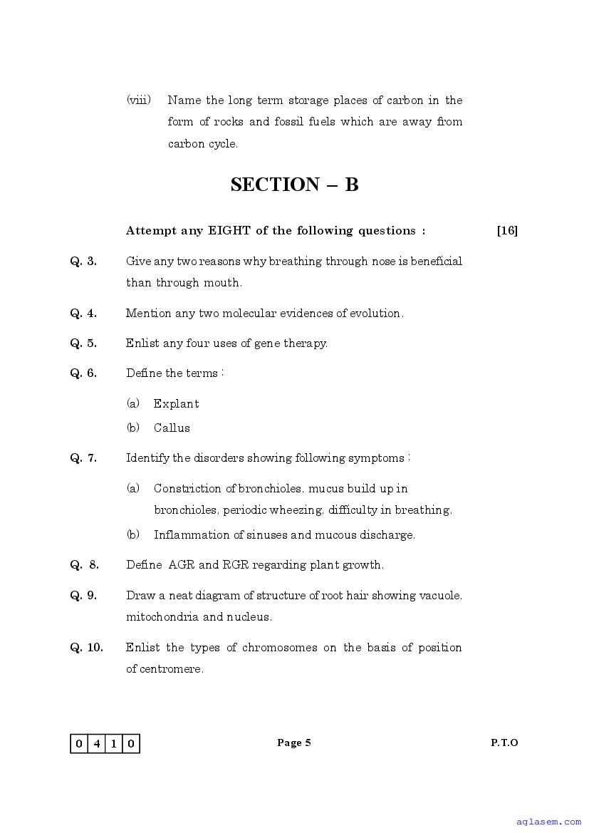 | Study Material Here | Maharashtra Sample Paper for Class 12 Biology |