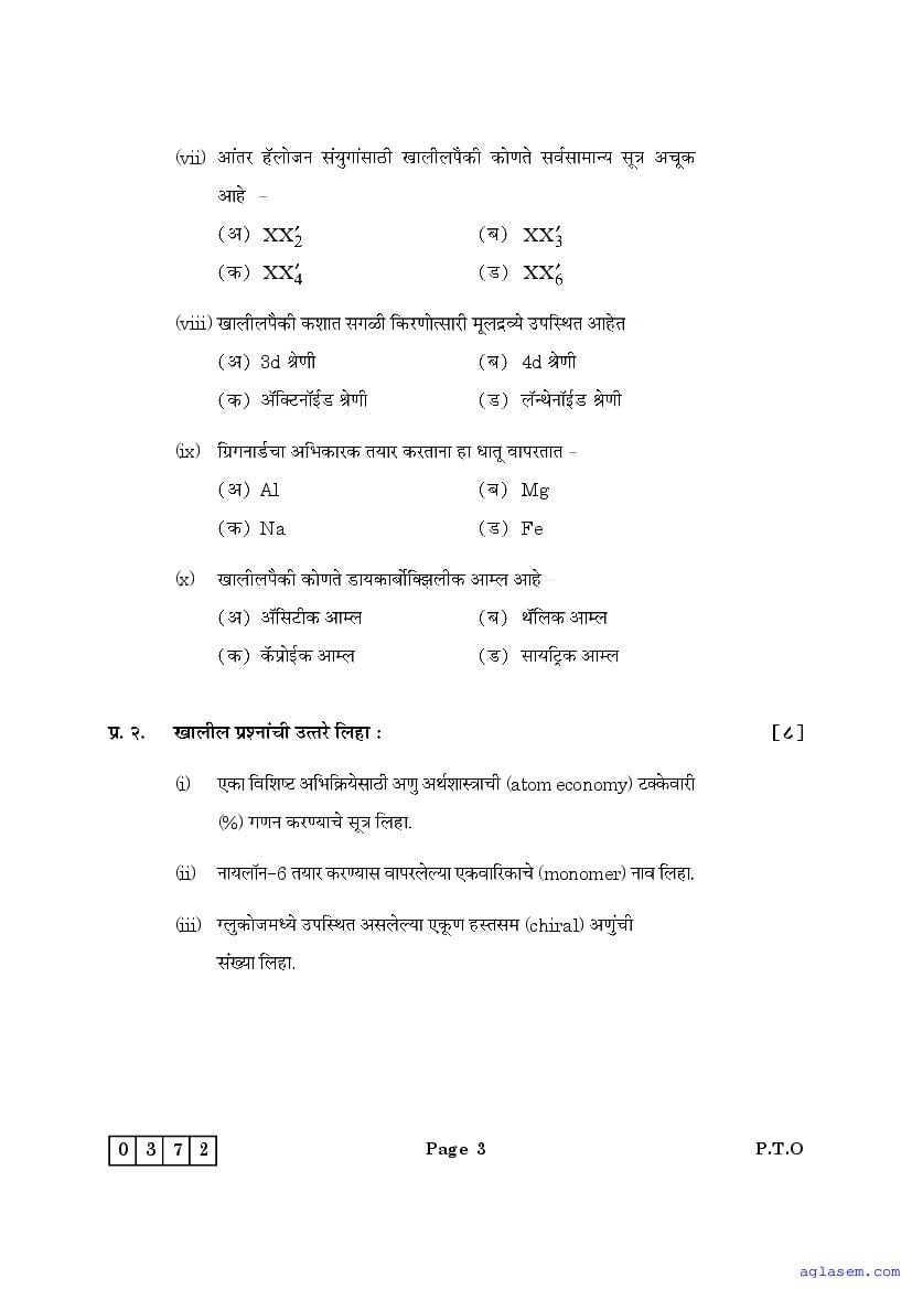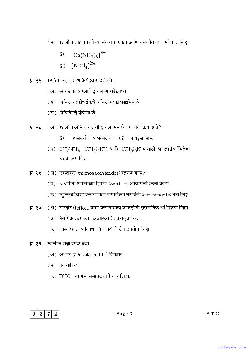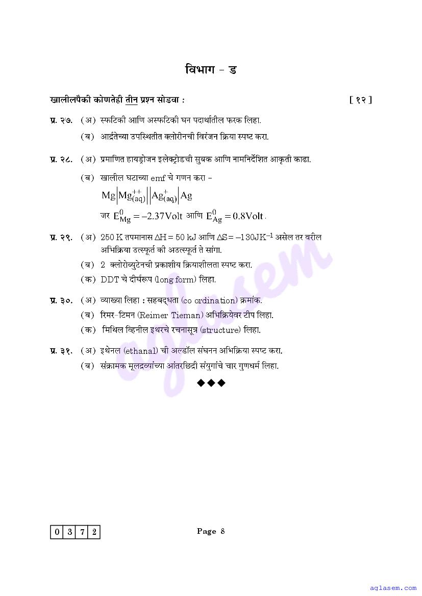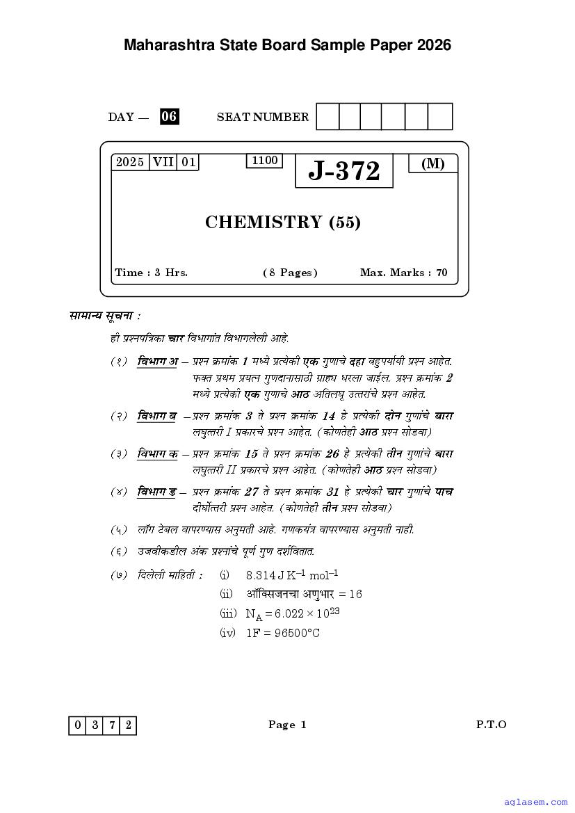 Maharashtra Board HSC Chemistry Sample Paper 2026 is an important study material. You can download the Maha Std 12 Chemistry Model Question Paper PDF here on aglasem to improve your learnings. This Class 12 Sample Paper of Maharashtra Board contains specimen questions of Chemistry subject from MSBSHSE syllabus. They help you practice what you learnt from HSC Chemistry textbook and also do well in tests and assessments.