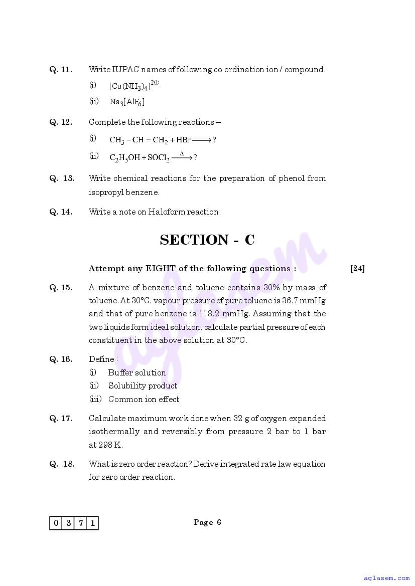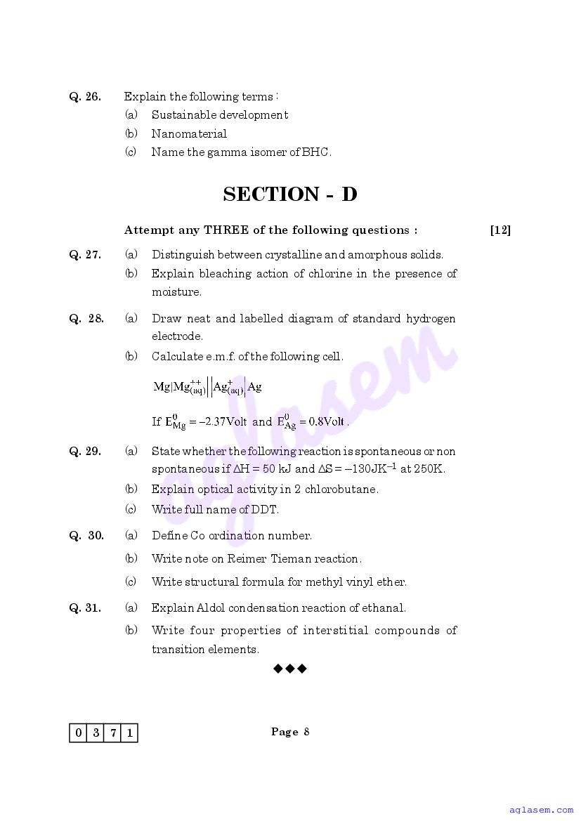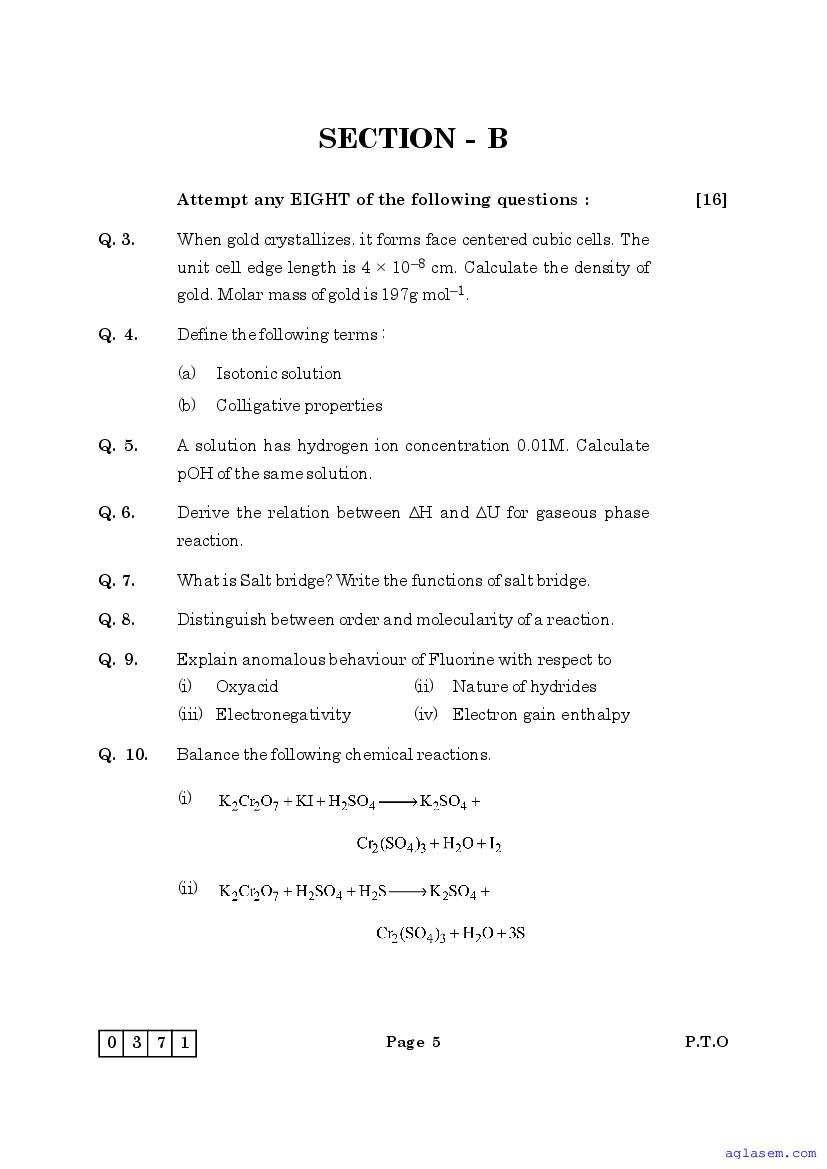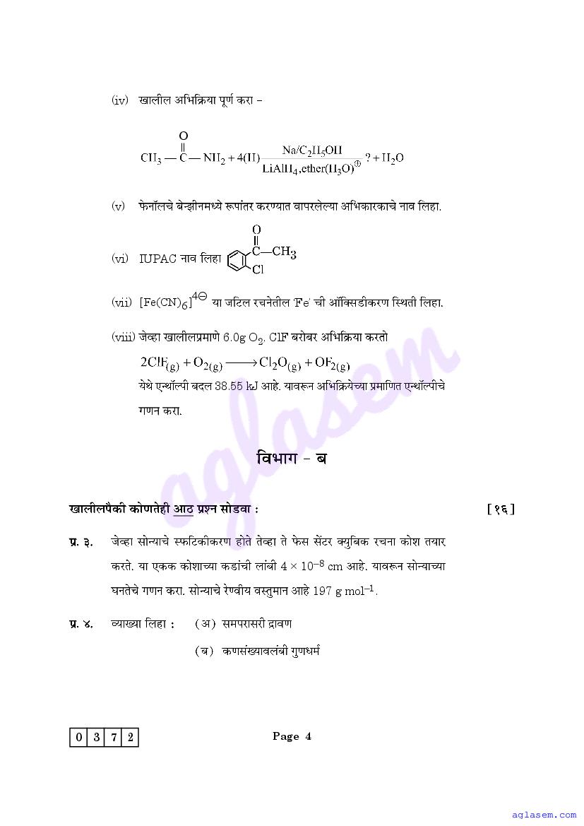 | Study Material Here | Maharashtra Sample Paper for Class 12 Chemistry |