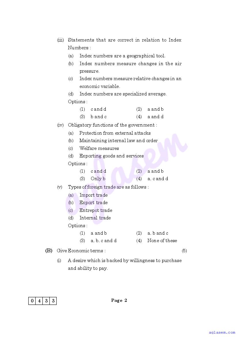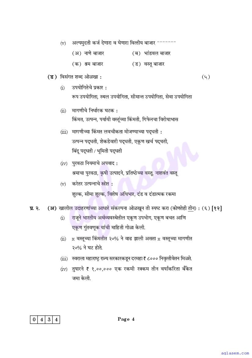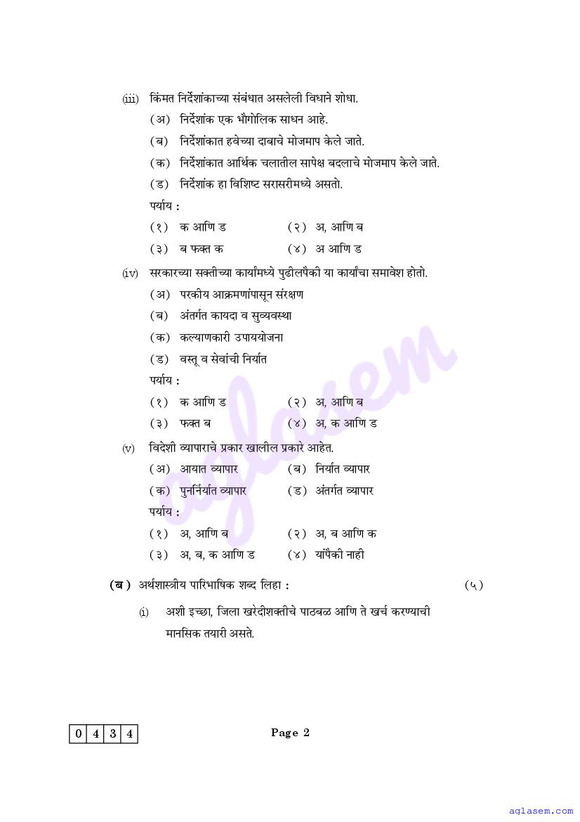The Maharashtra Board Model Sample Paper for class 12 Economics is as follows.