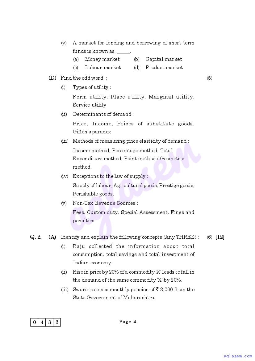 | Study Material Here | Maharashtra Sample Paper for Class 12 Economics |