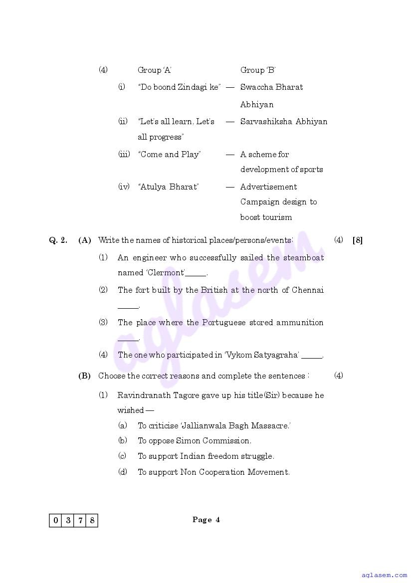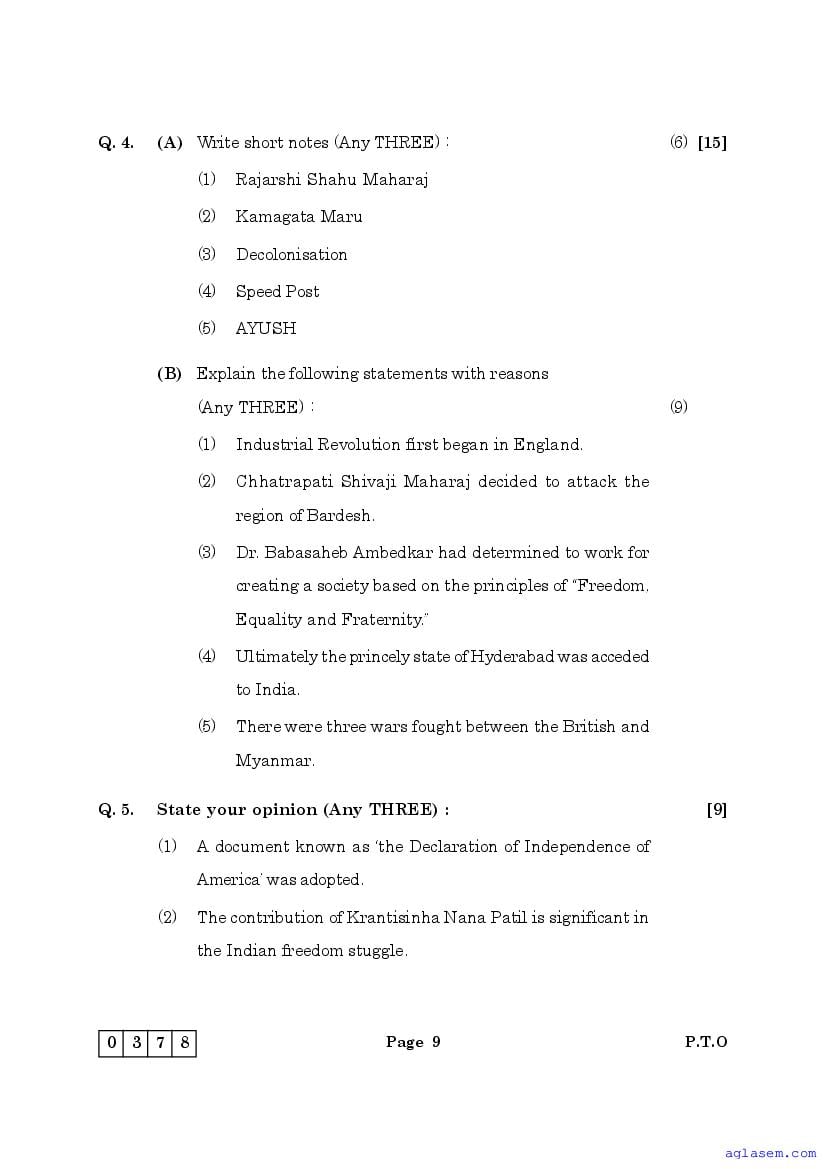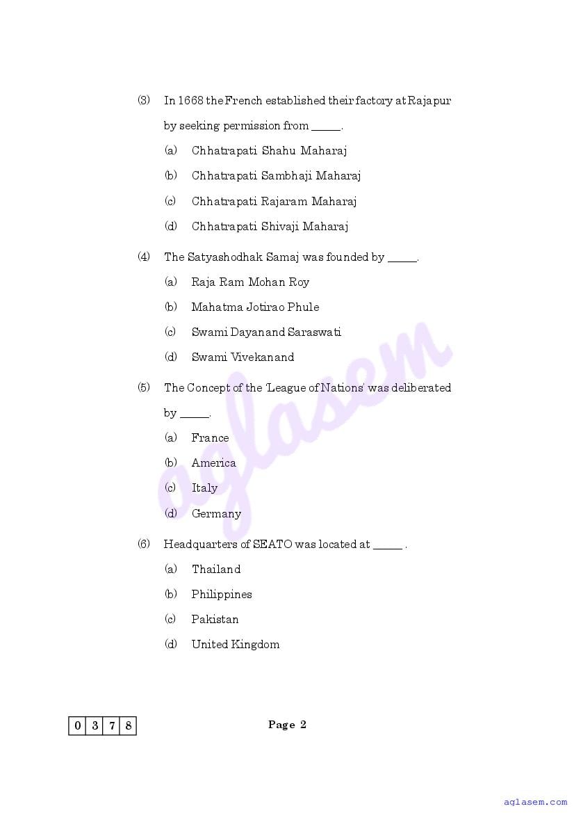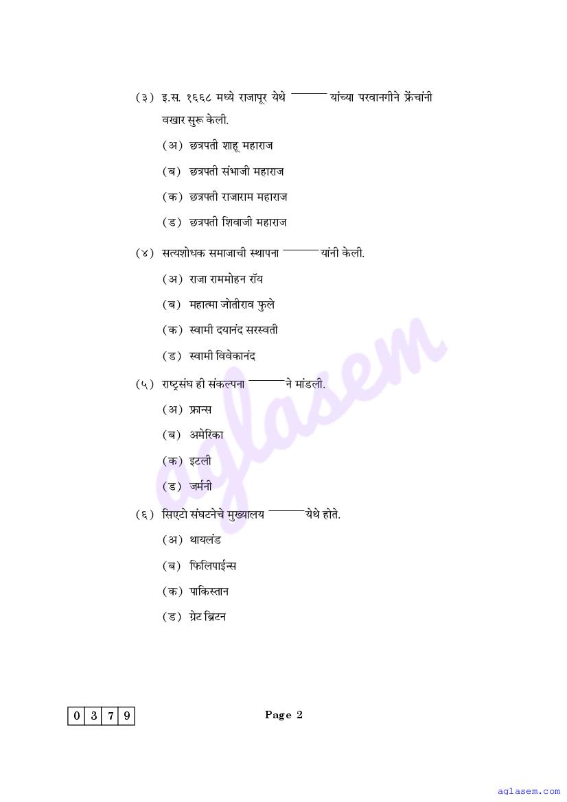 The Maharashtra Board Model Sample Paper for class 12 History is as follows.