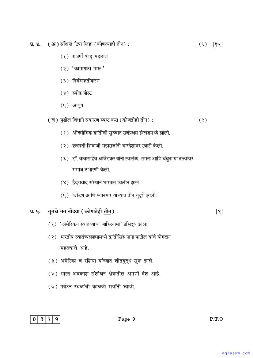 Likewise the sample question papers for all classes in Maharashtra state board are as follows.