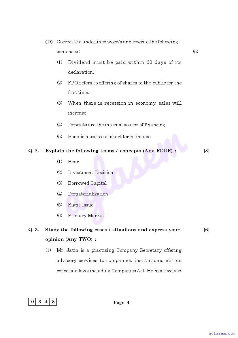 | Study Material Here | Maharashtra Sample Paper for Class 12 Secretarial Practice |