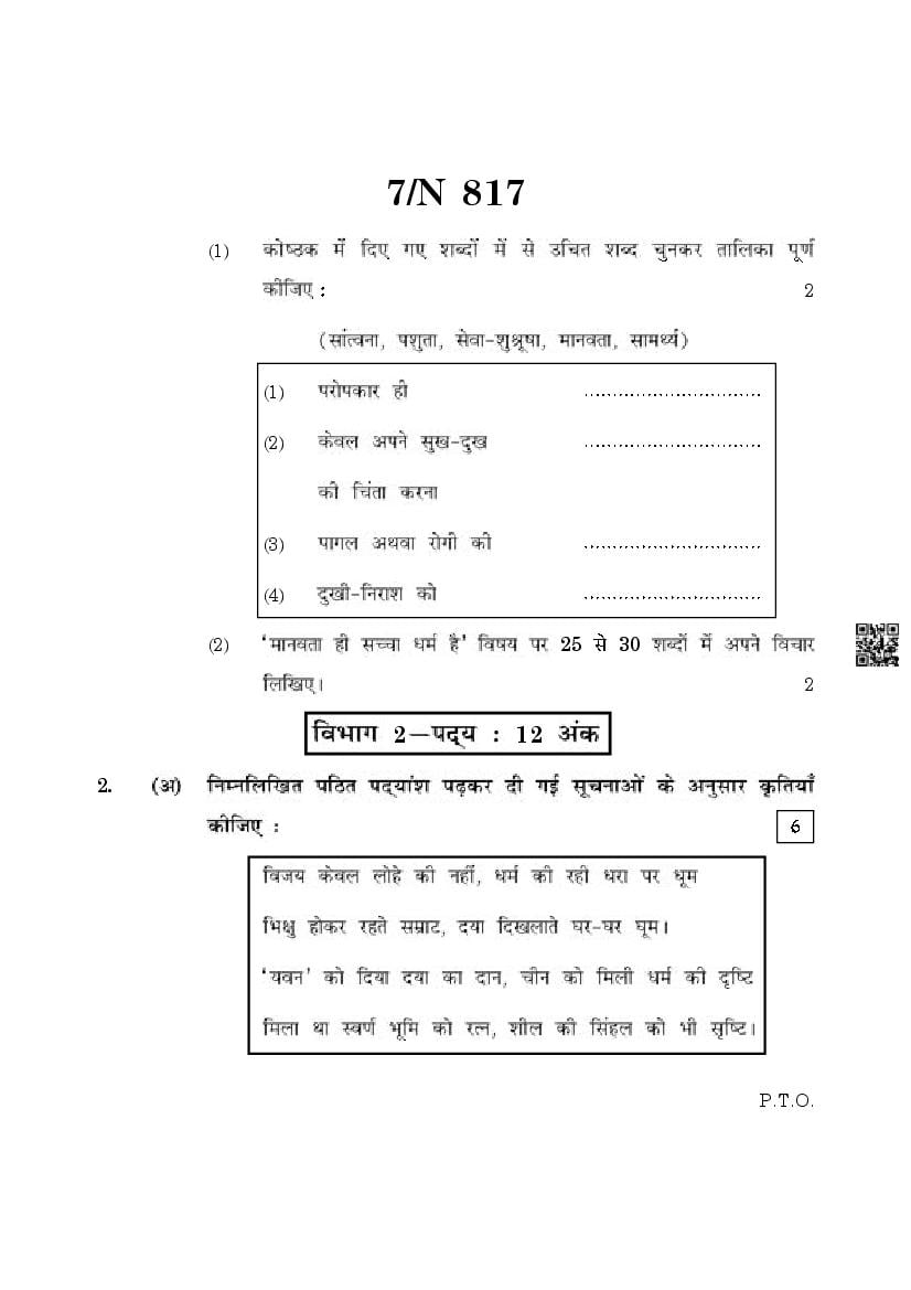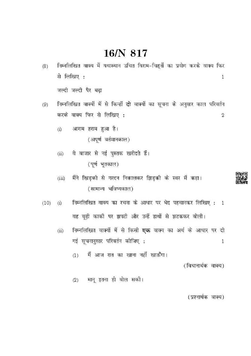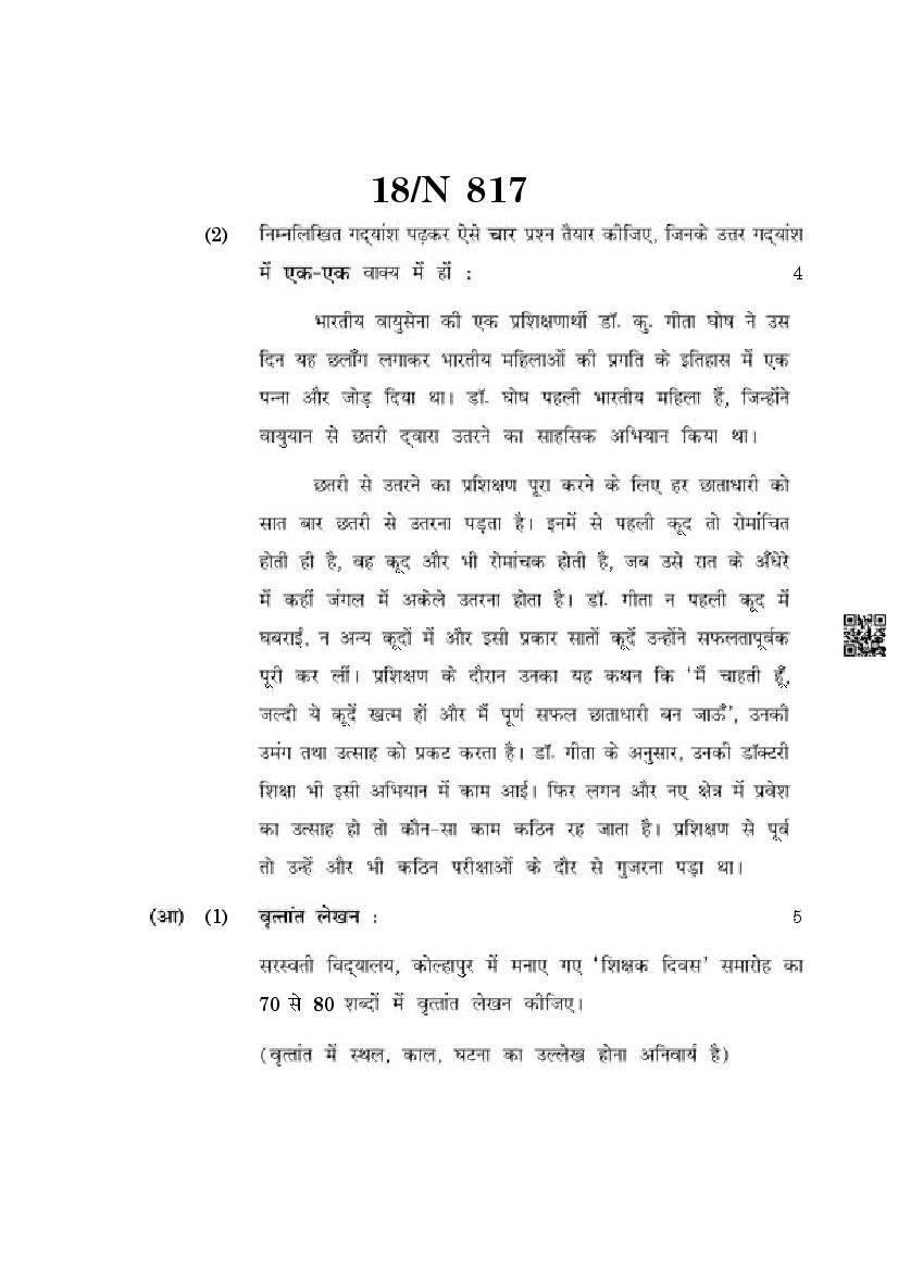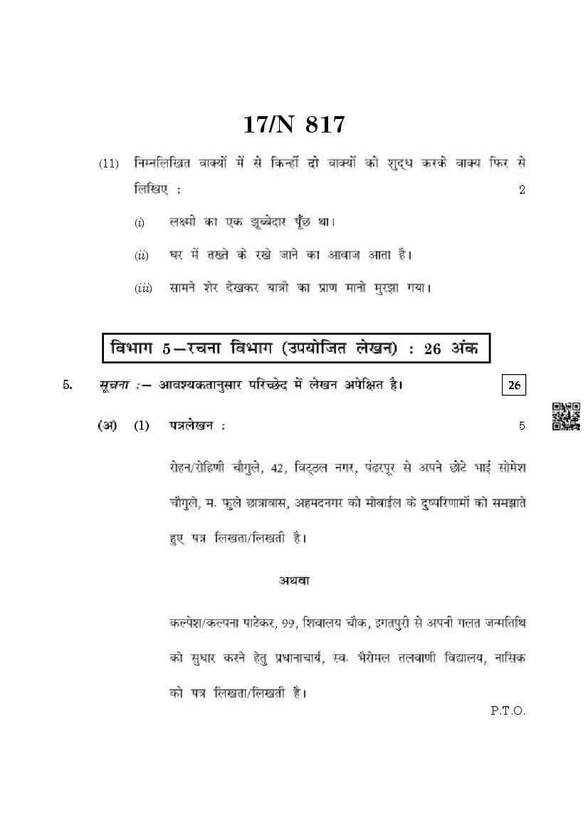 The Maharashtra Board Exam Question Paper of Class 10 SSC Hindi is as follows.