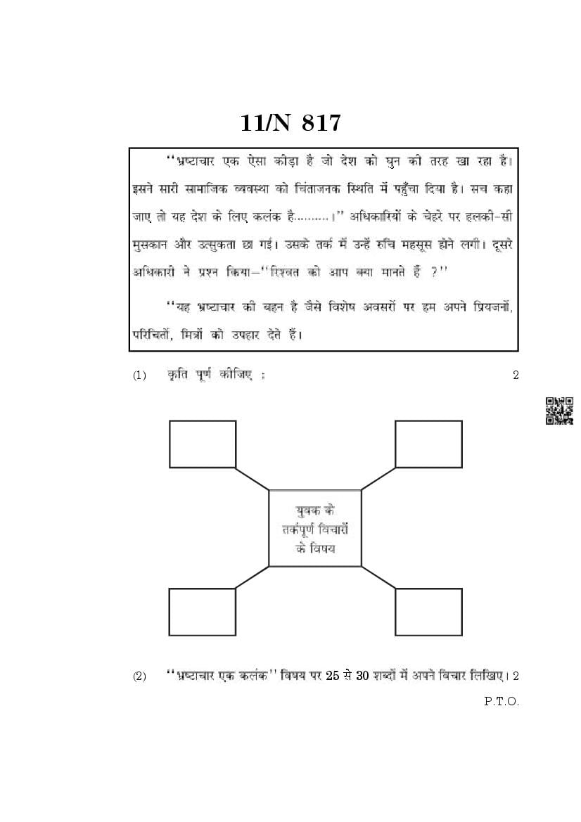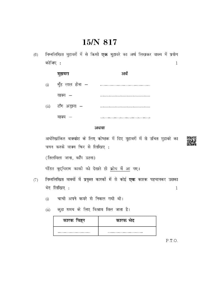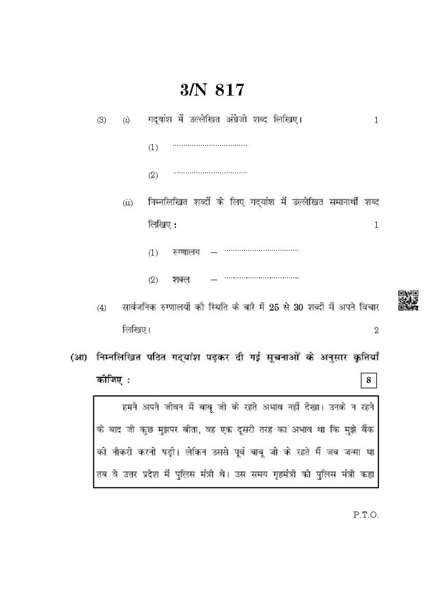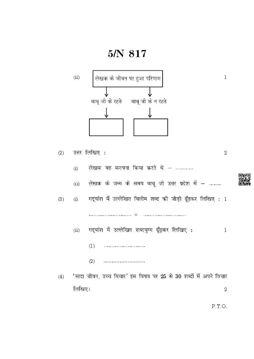 The Maharashtra Board Exam Question Paper of Class 10 SSC Hindi is as follows.