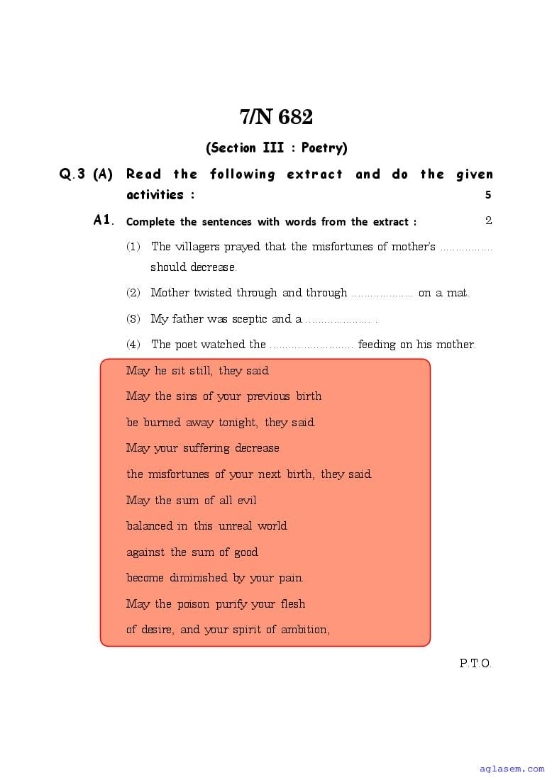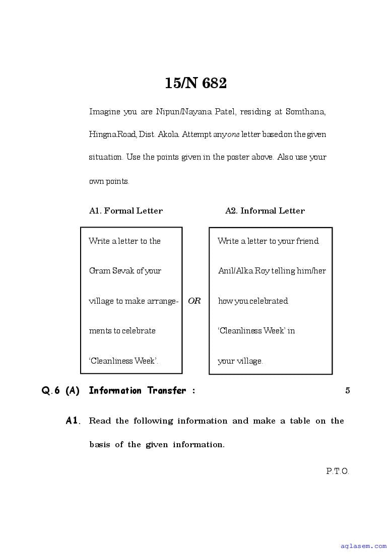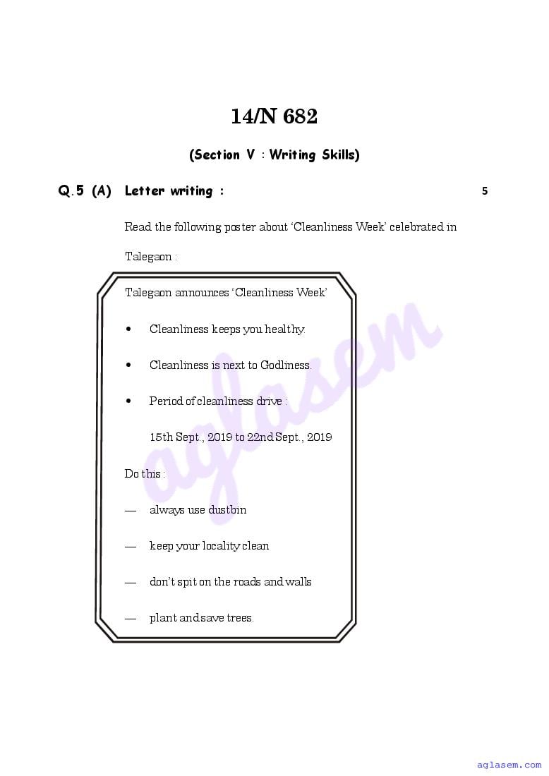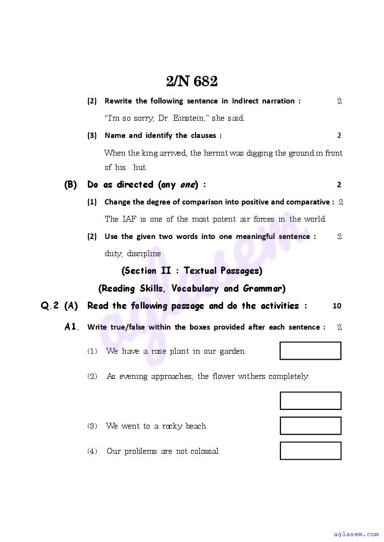 The Maharashtra Board Model Sample Paper for class 10 English is as follows.