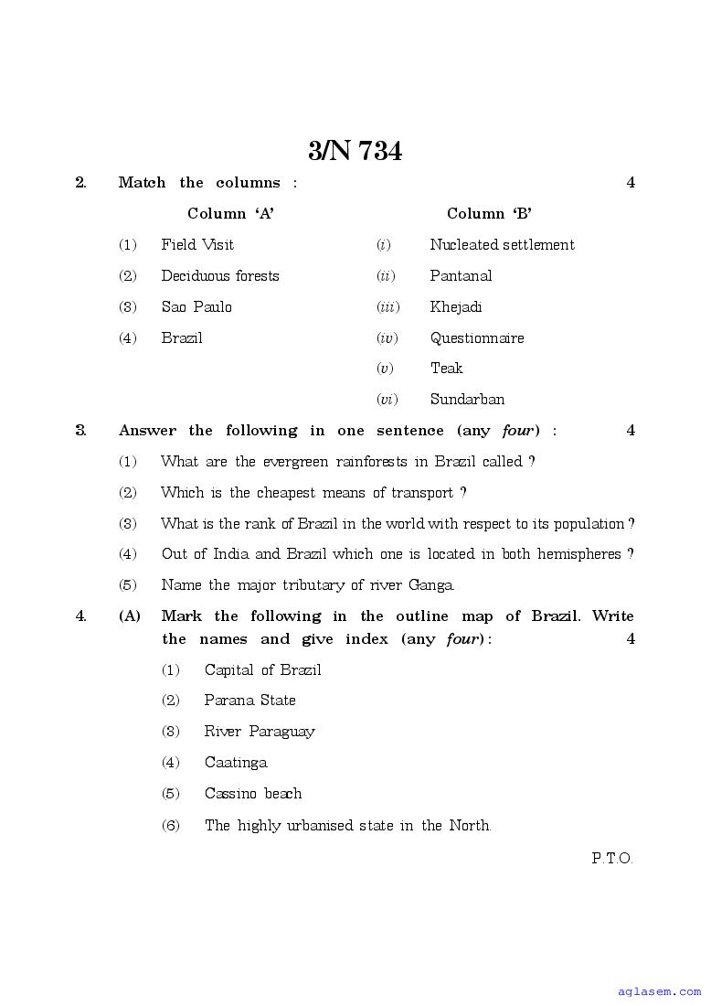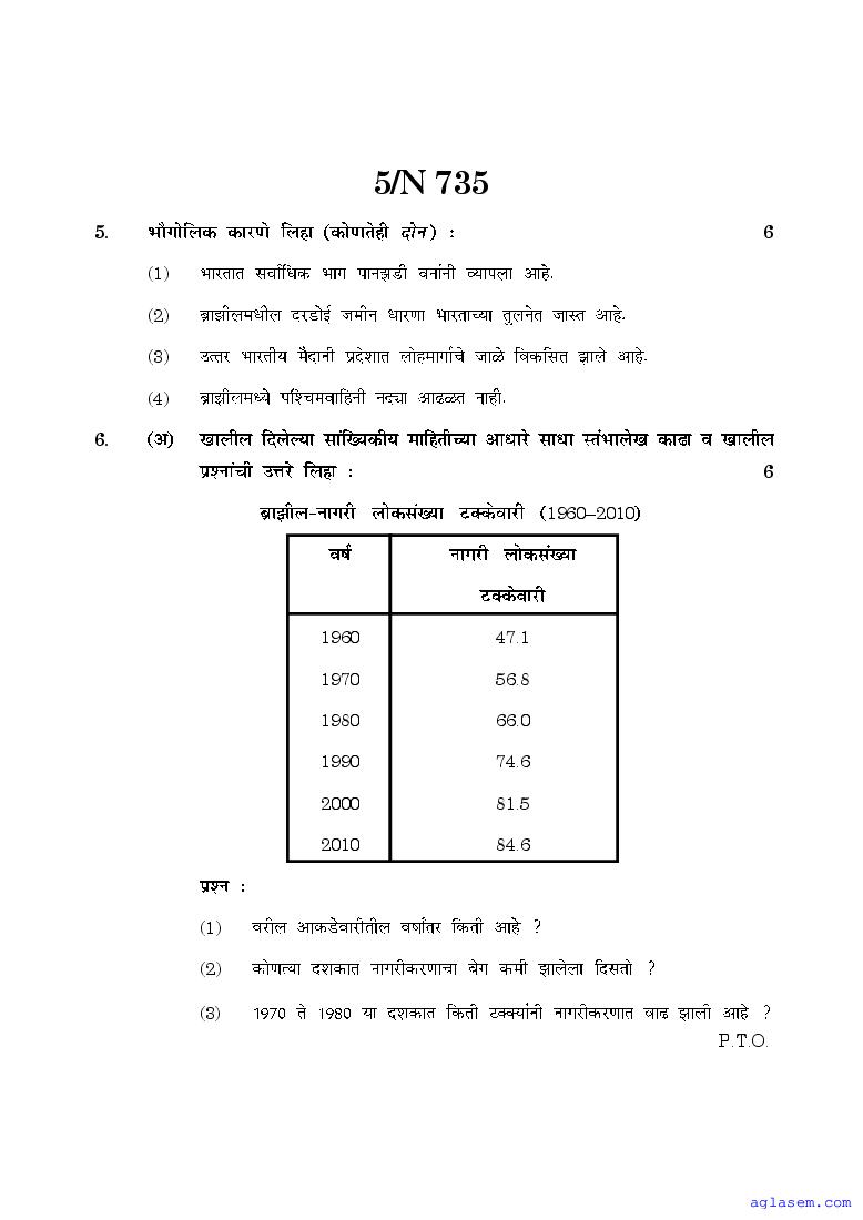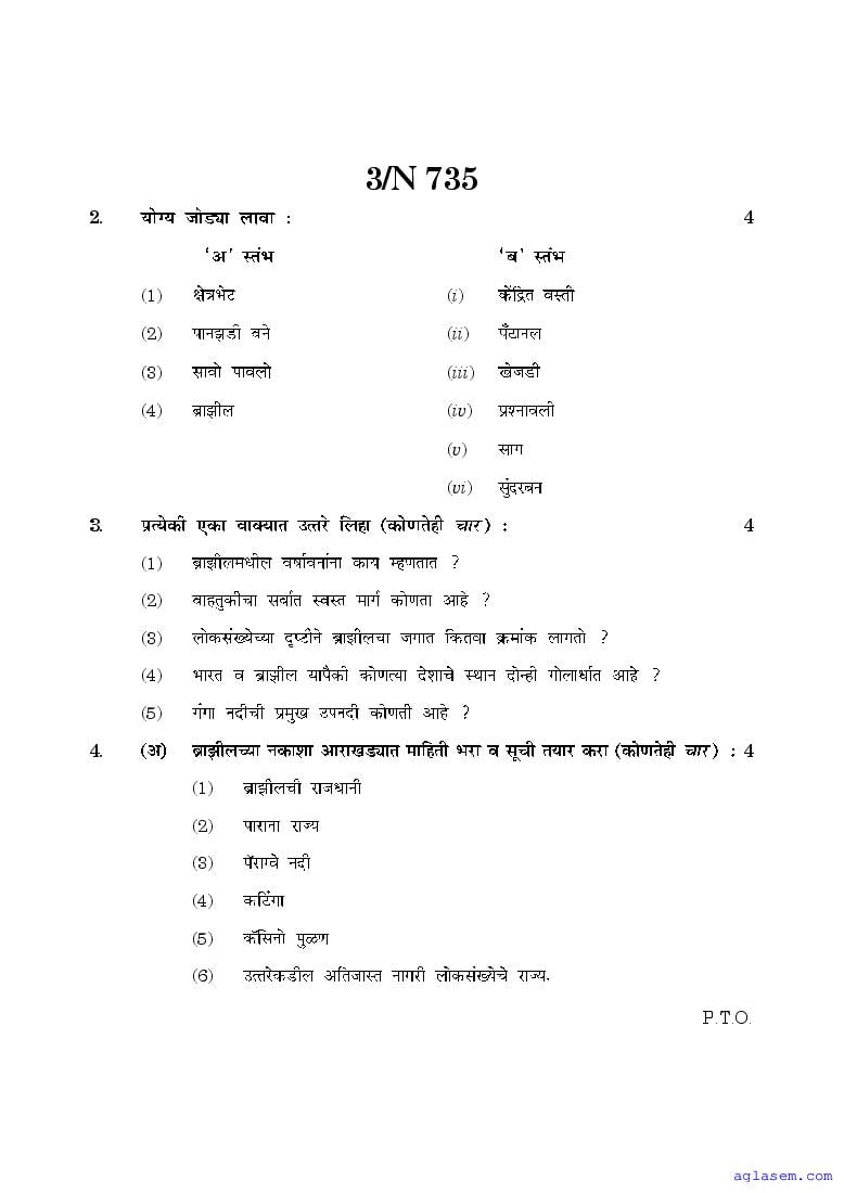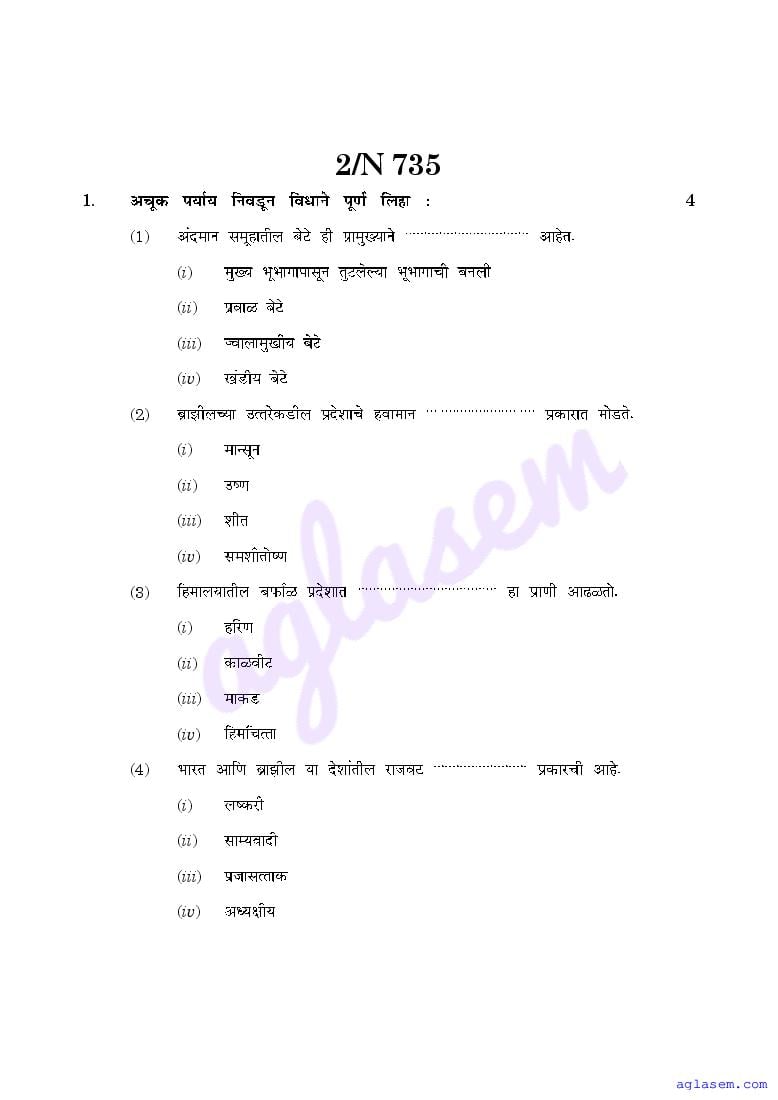 The Maharashtra Board Model Sample Paper for class 10 Geography is as follows.