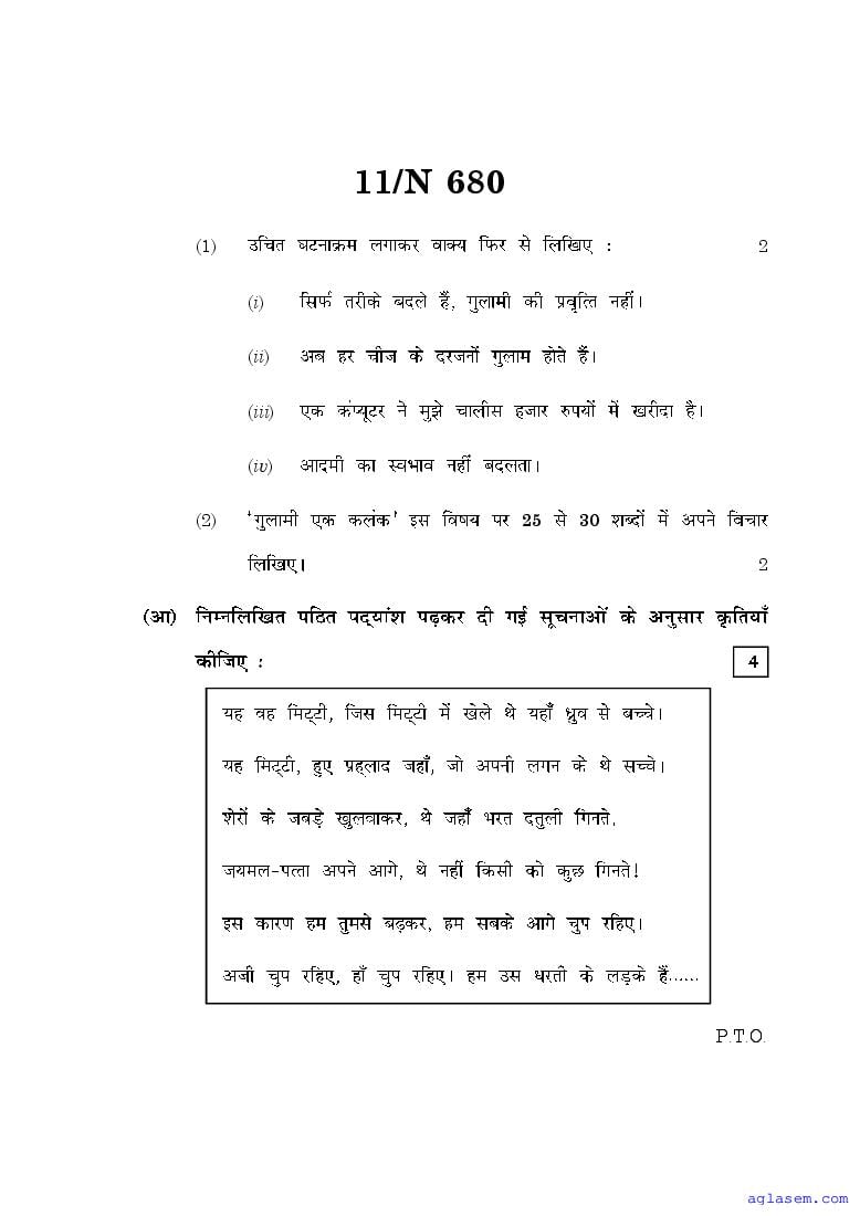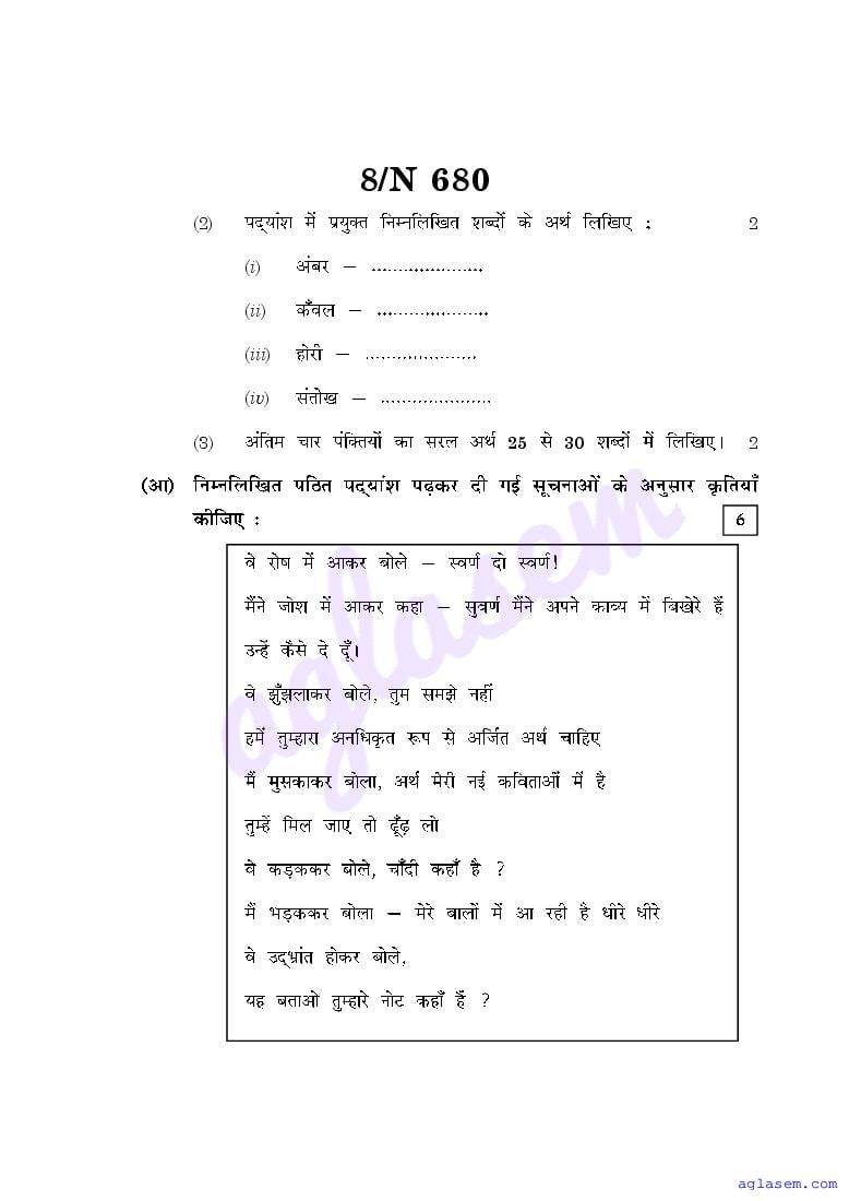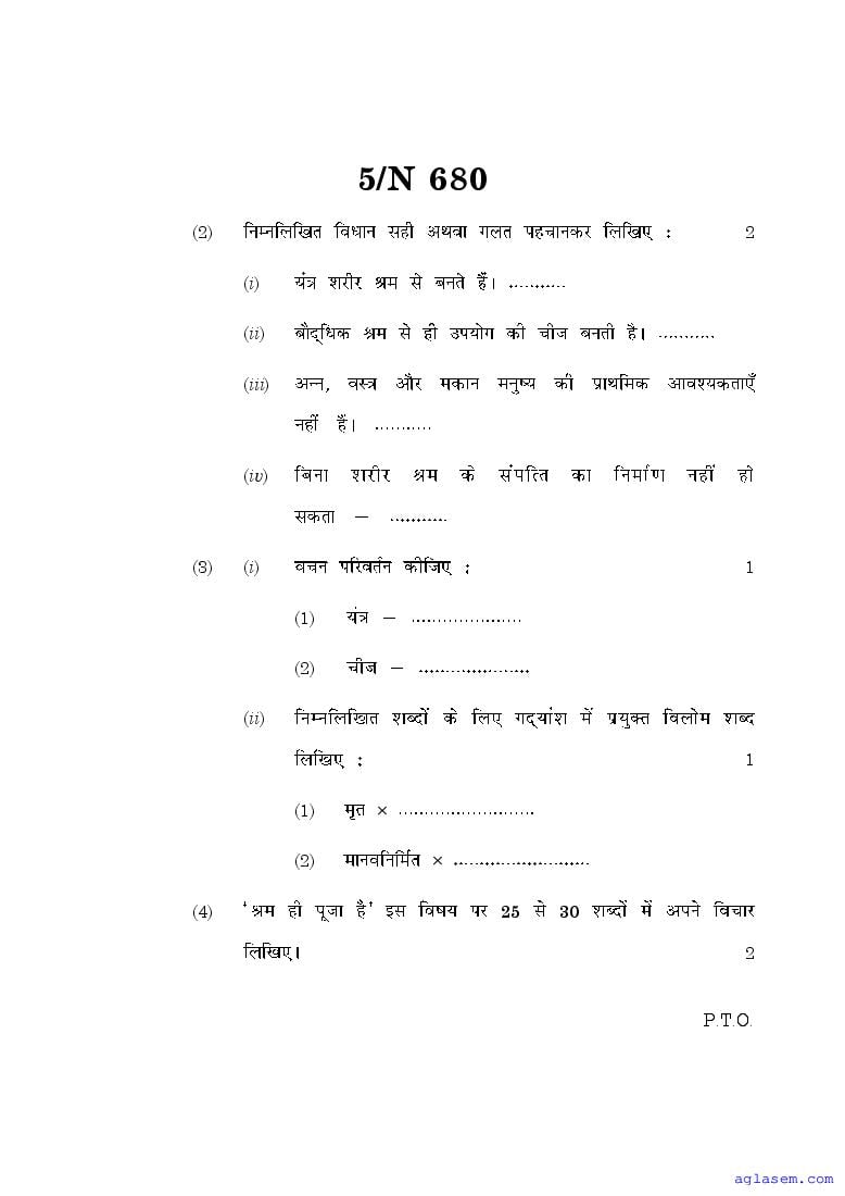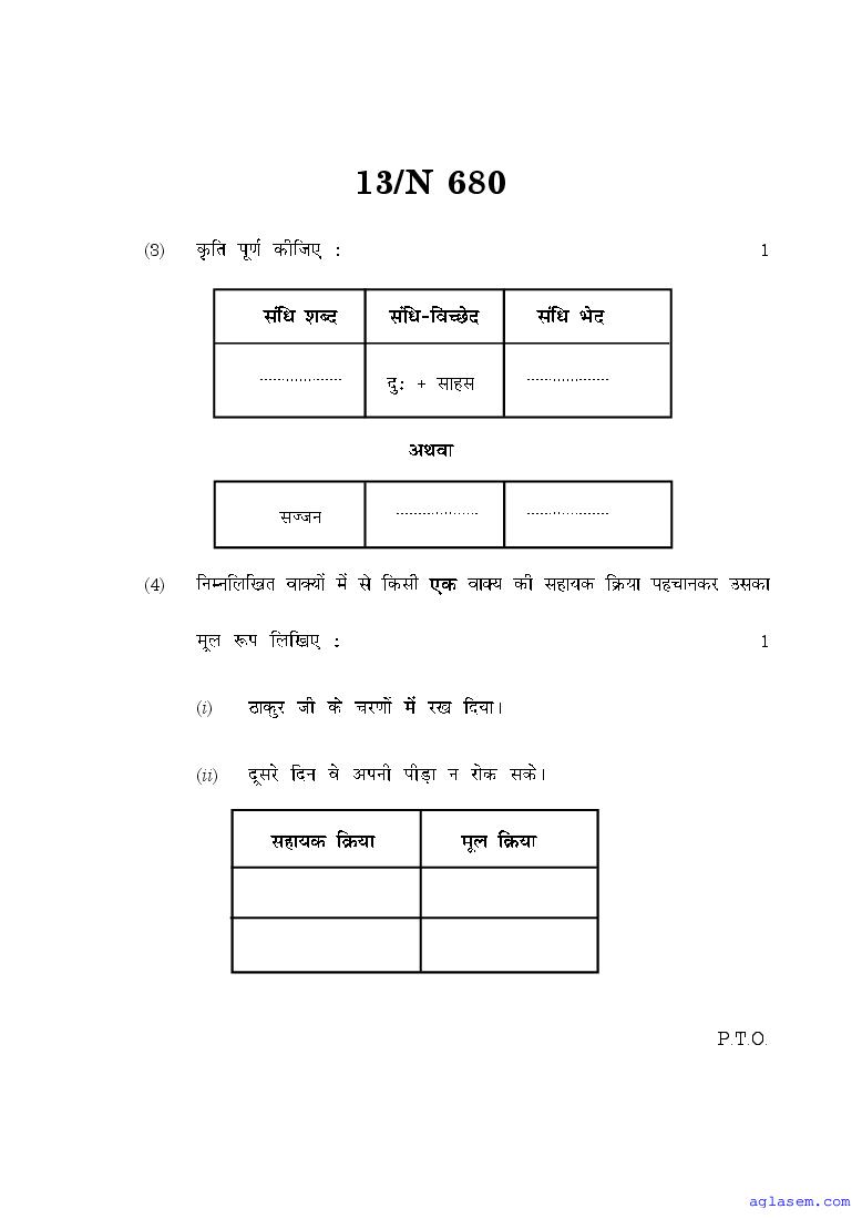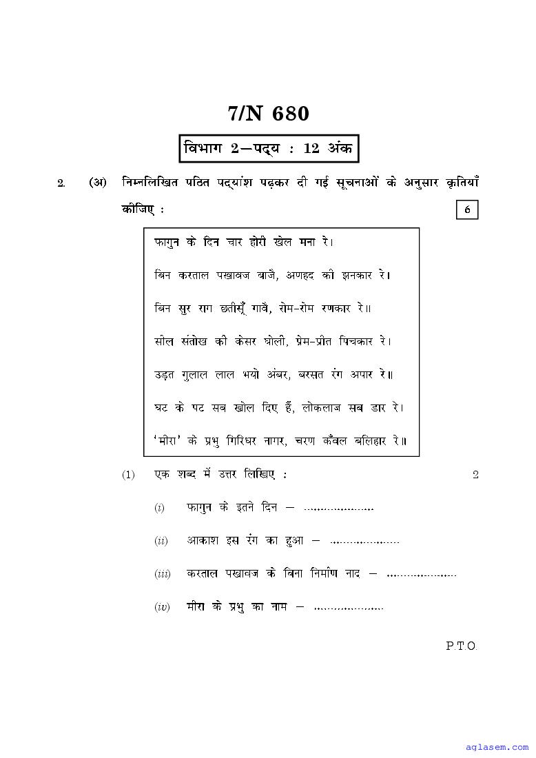 Maharashtra 10th Std Model Question Paper Hindi 2nd or 3rd Language View Download
