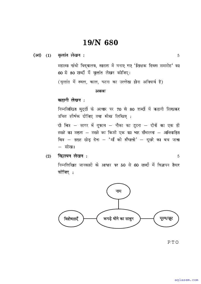 The Maharashtra Board Model Sample Paper for class 10 Hindi Third Language is as follows.