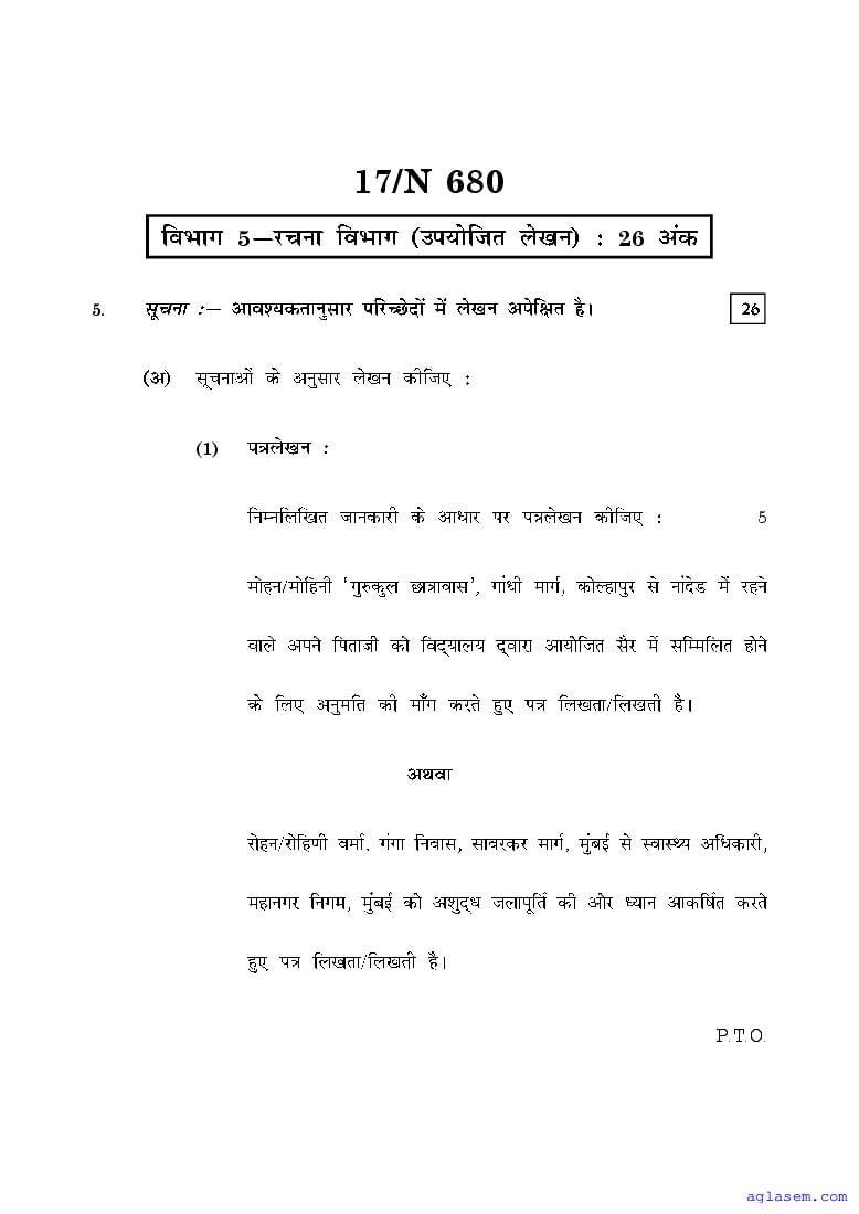 Maharashtra Board SSC Hindi Sample Paper 2026 is an important study material. You can download the Maha Std 10 Hindi Model Question Paper PDF here on aglasem to improve your learnings. This Class 10 Sample Paper of Maharashtra Board contains specimen questions of Hindi subject from MSBSHSE syllabus. They help you practice what you learnt from SSC Hindi textbook and also do well in tests and assessments.