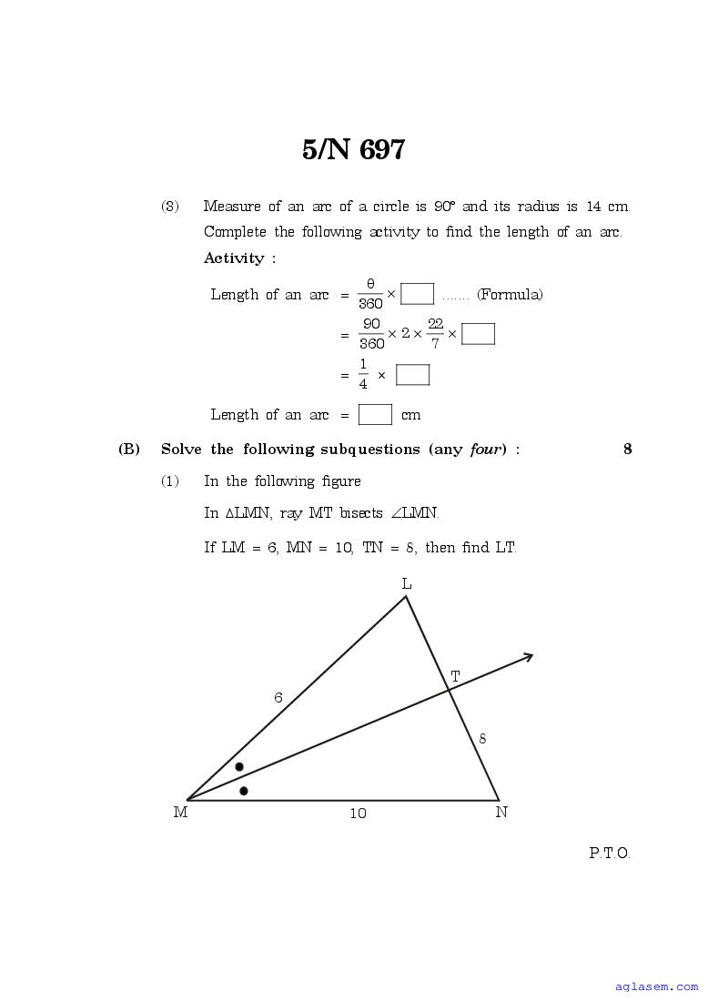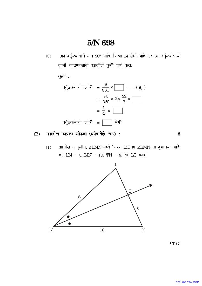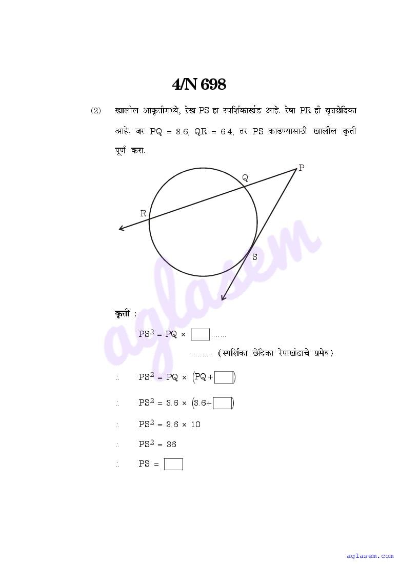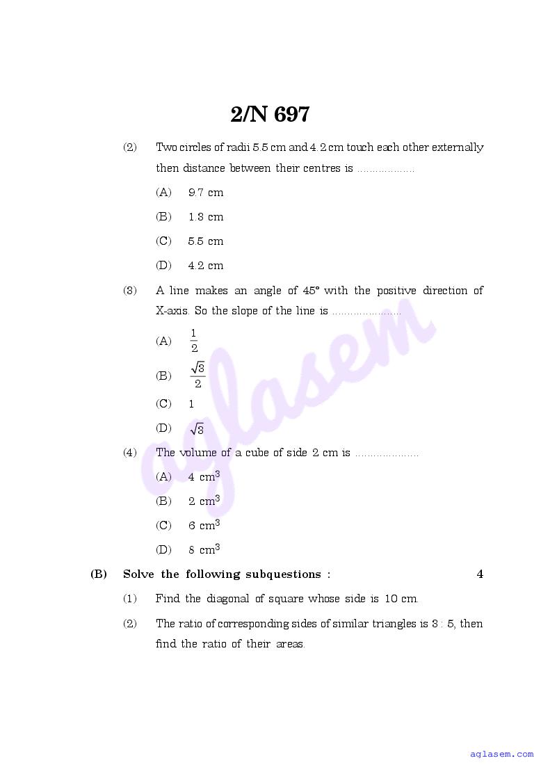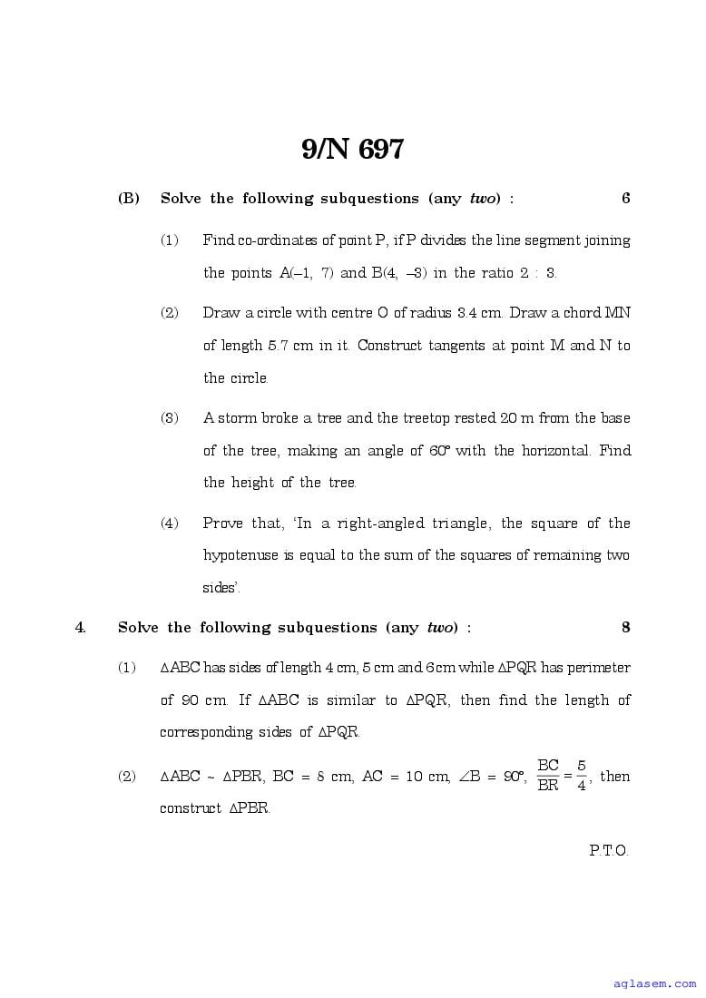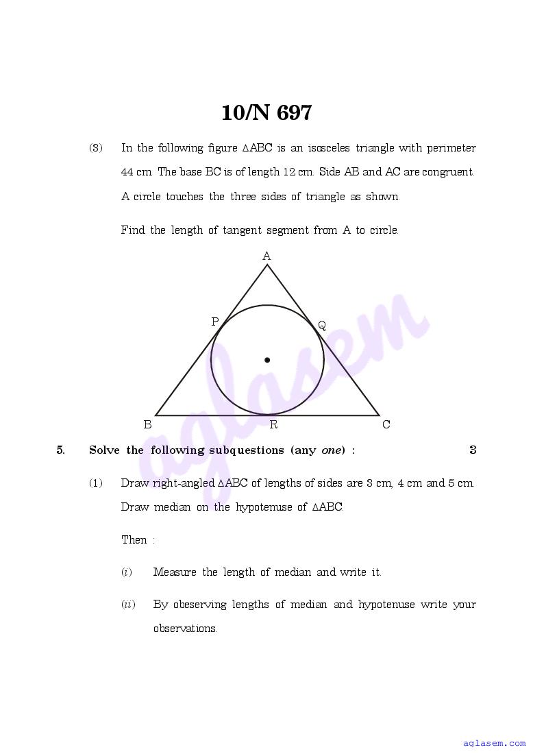 Maharashtra 10th Std Model Question Paper Mathematics Part II Geometry View Download