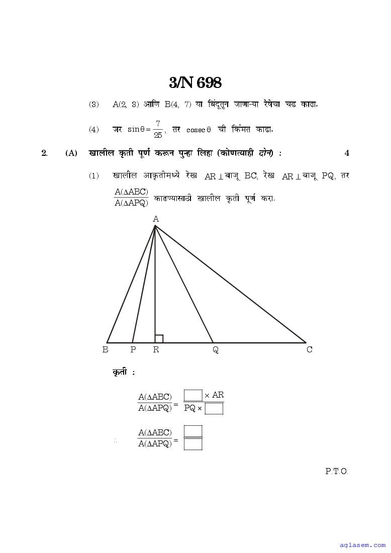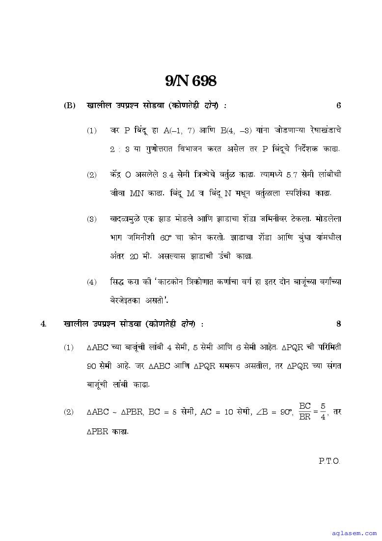 The Maharashtra Board Model Sample Paper for class 10 Maths – Geometry is as follows.