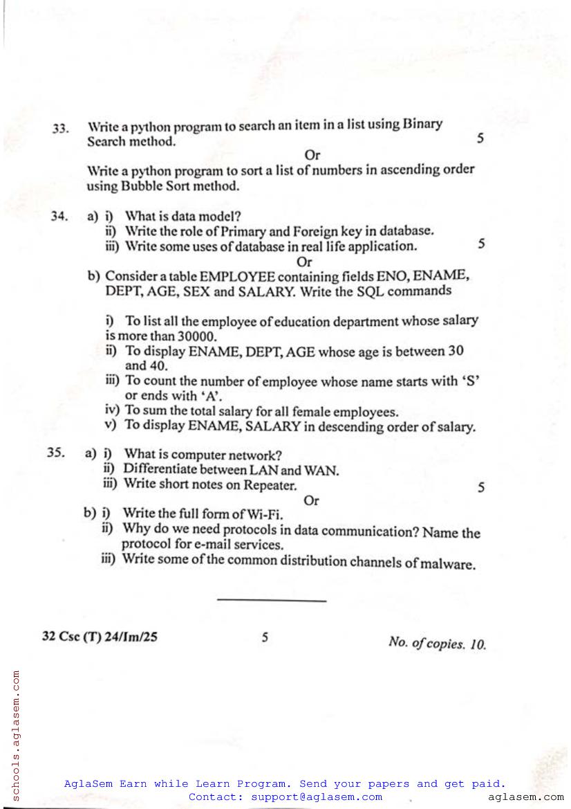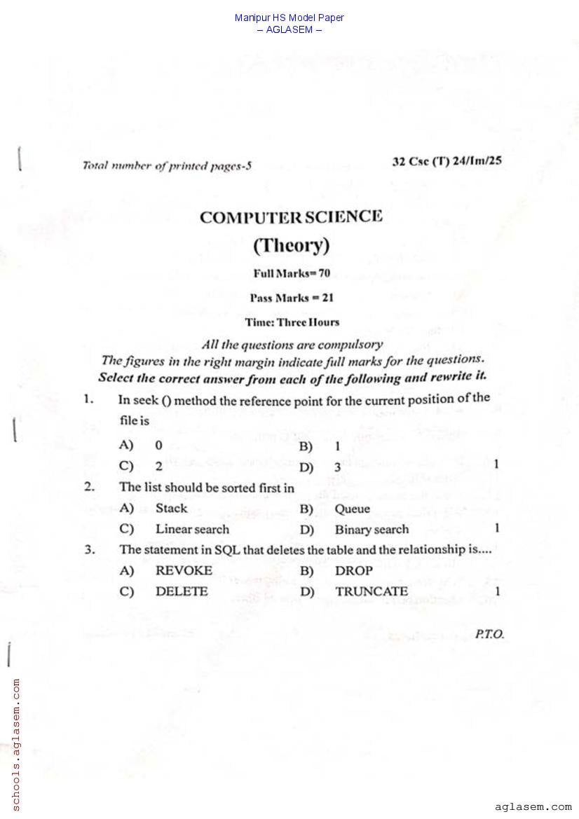 Manipur Class 12 Sample Paper Computer Science View Download