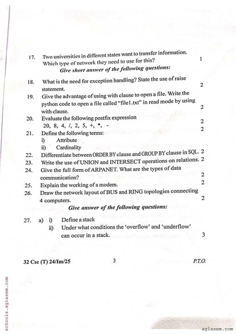 CHSE Odisha Class 12 Computer Science Sample Paper 2026 is released based on syllabus and exam pattern of Council of Higher Secondary Education Odisha. You can now download the CHSE Odisha 12th class Computer Science Model Question Paper PDF here on aglasem.com page. This CHSE Odisha Class 12 Sample Question Paper contains specimen questions from Computer Science syllabus as per examination blueprint. Therefore by solving the Computer Science sample paper you can aim at scoring high marks in the Class 12 board exams.