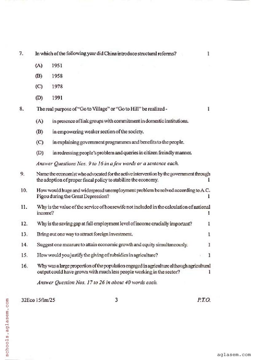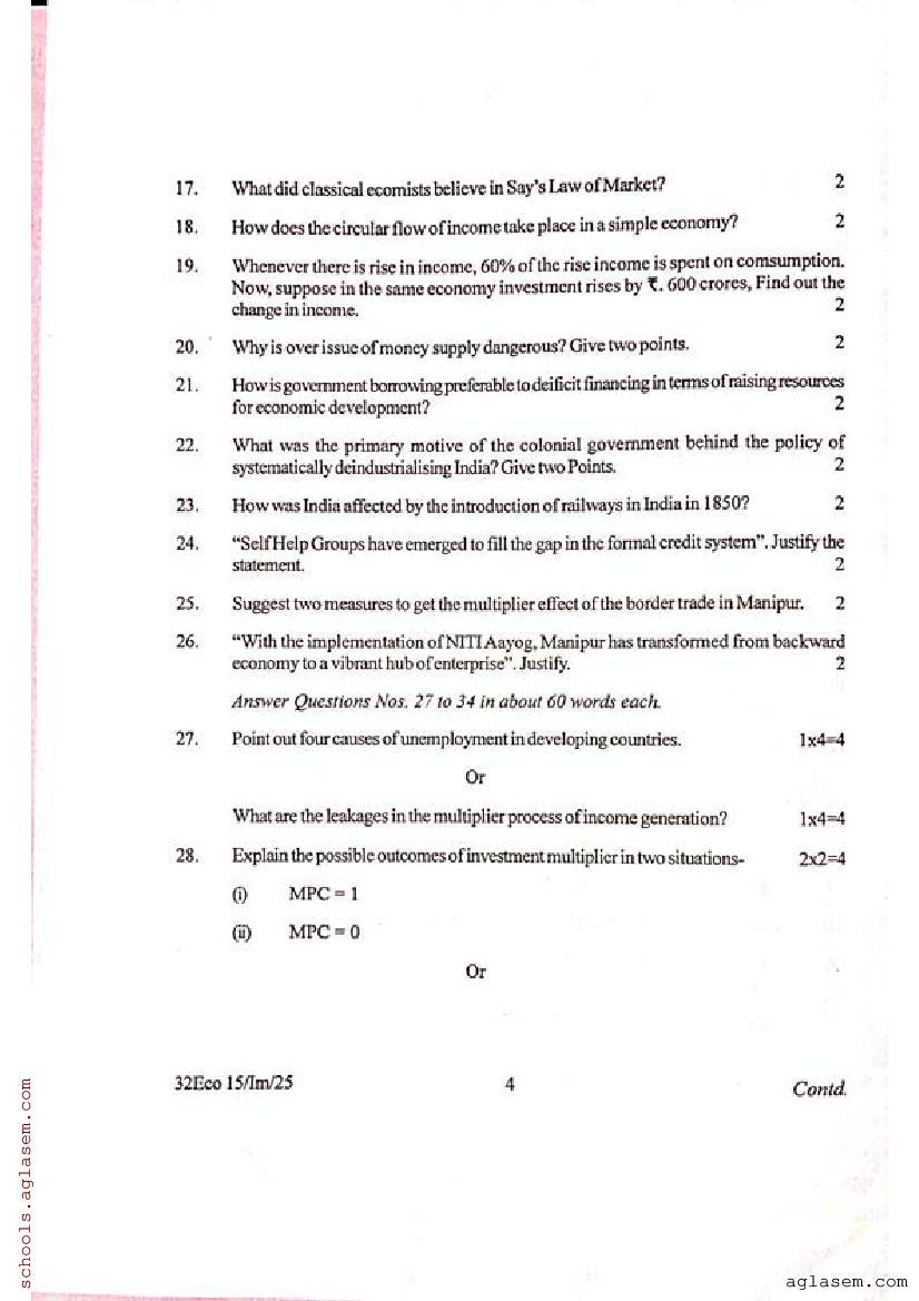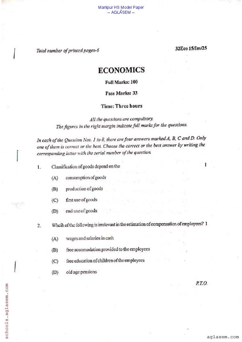 Manipur Class 12 Sample Paper Economics View Download