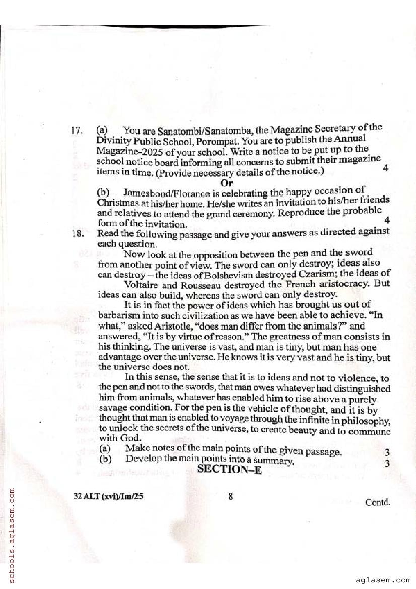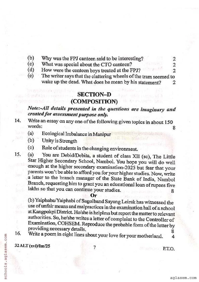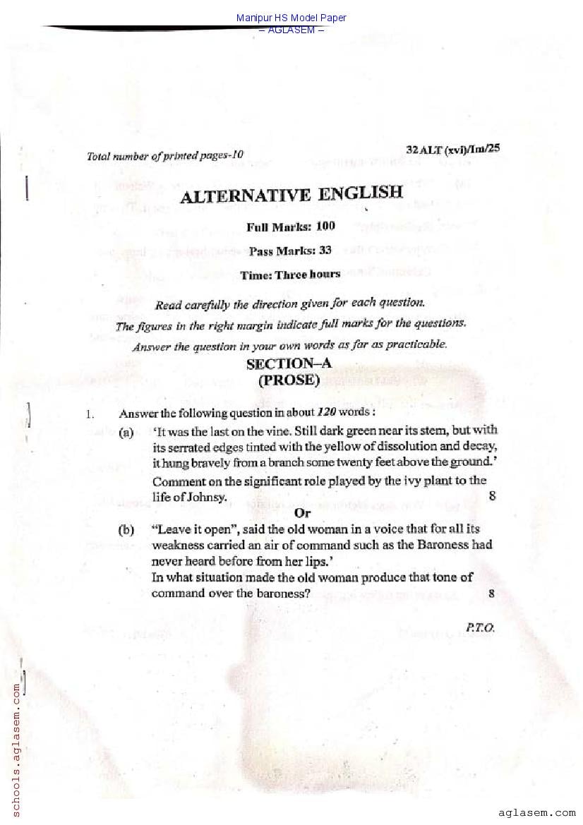 Manipur Class 12 Sample Paper English Alternative View Download