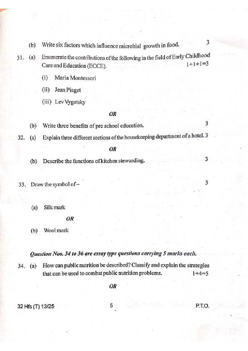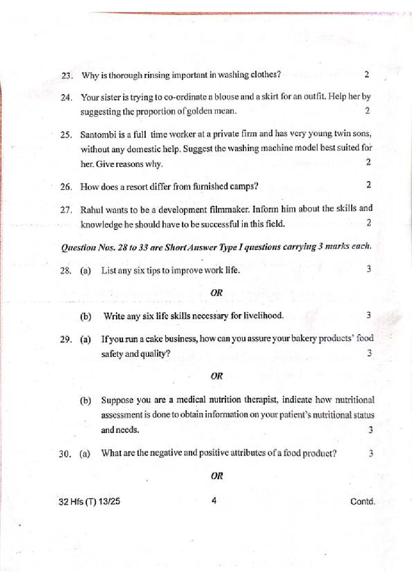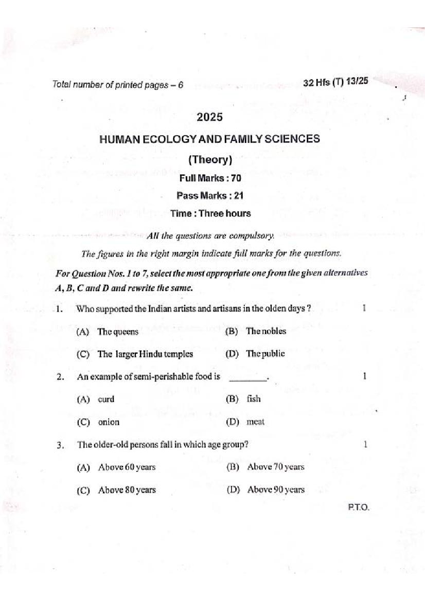 Manipur Board Class 12 Question Paper 2025 for Human Ecology and Family Sciences View Download
