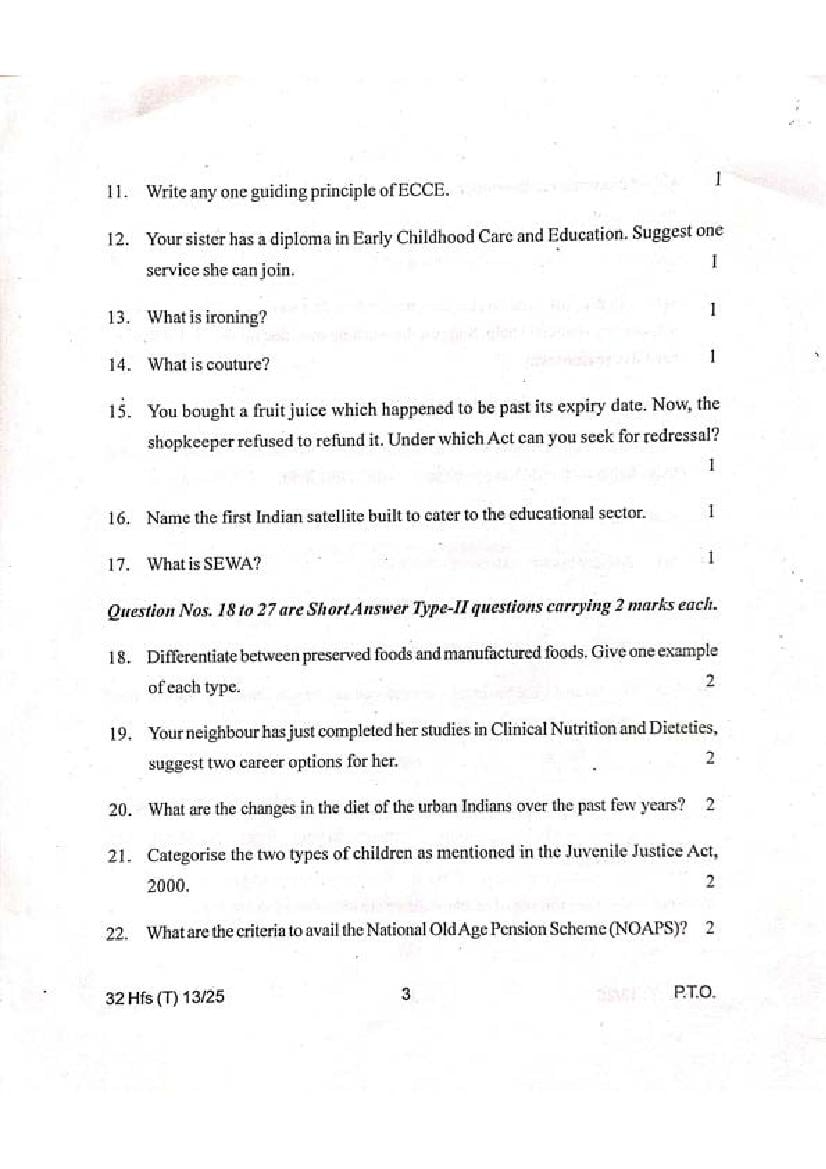 | Class 12 Human Ecology and Family Sciences Question Paper of 2025 | Click Here to Download PDF |