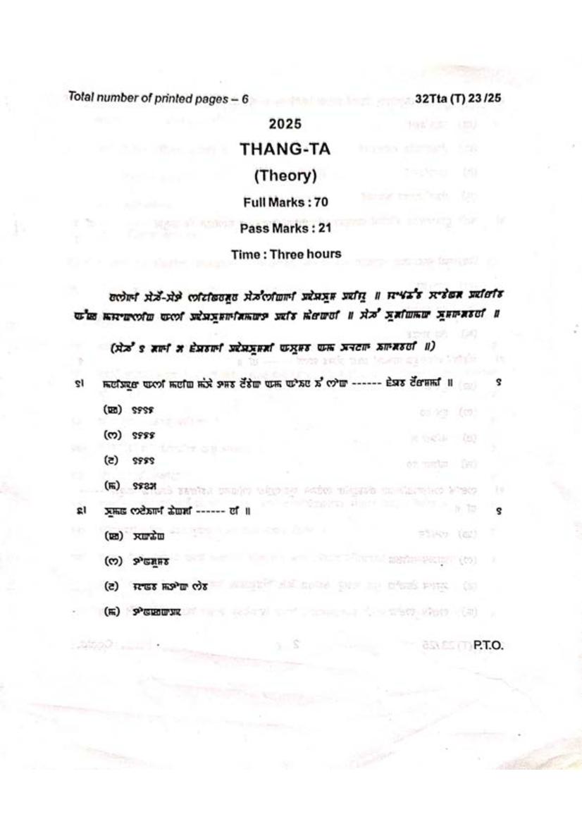 The Thang-Ta Class 12 Question Paper PDF of the latest question paper is as follows; it contains a comprehensive set of questions designed to evaluate the knowledge and understanding of the subject matter.