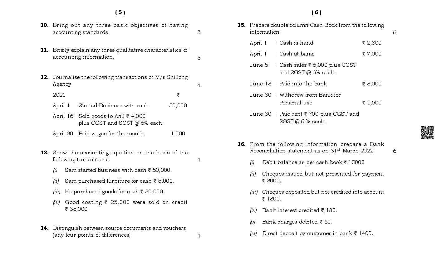 MBOSE Class 11 Sample Question Paper Accountancy View Download