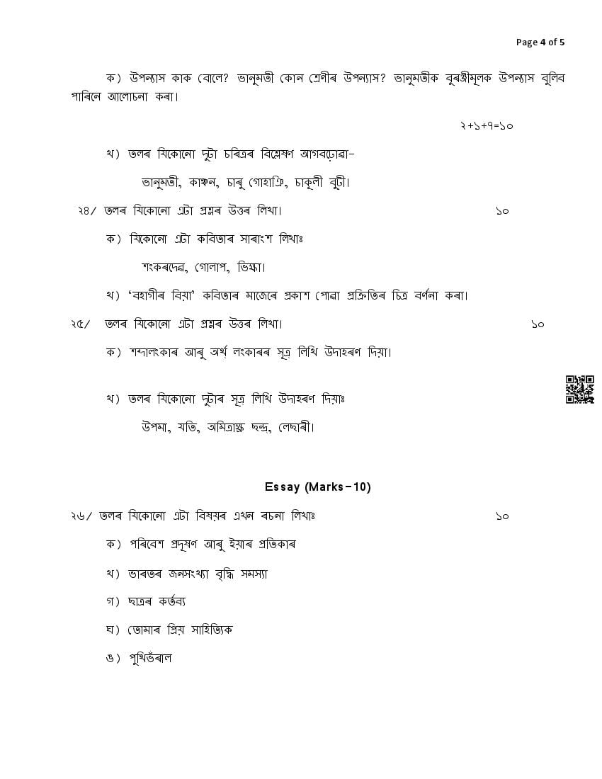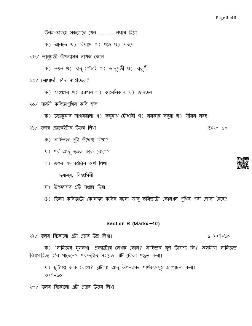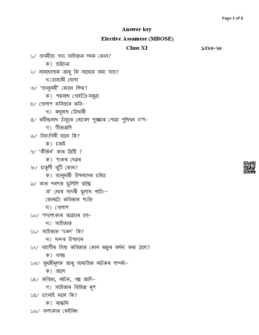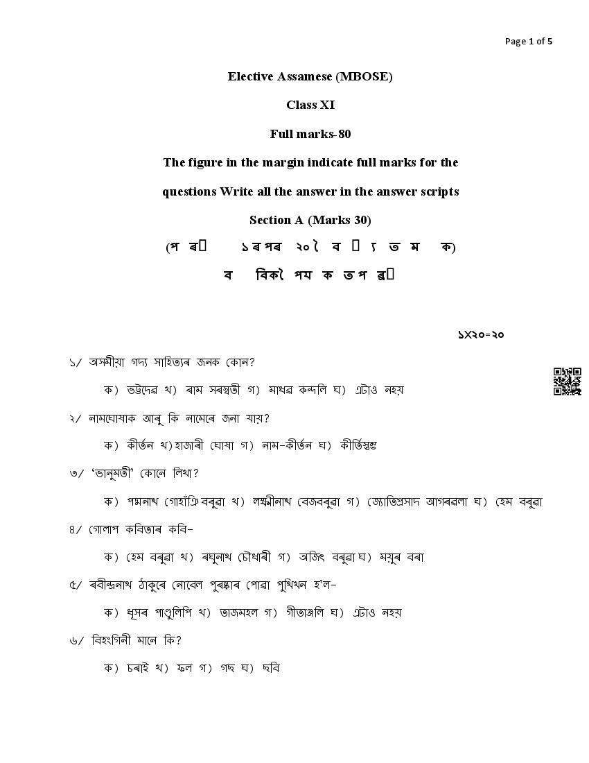 The MBOSE Sample Question Paper 2026 for Class XI (Class 11) Assamese Elective is as follows.