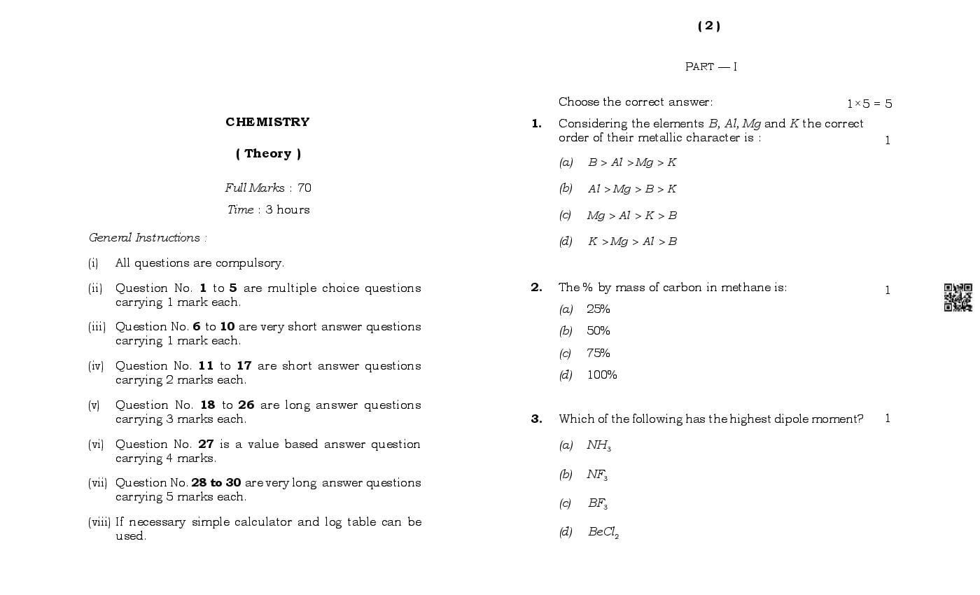 MBOSE Class 11 Chemistry Sample Question Paper Download Link – Click Here to Download Model Question Paper