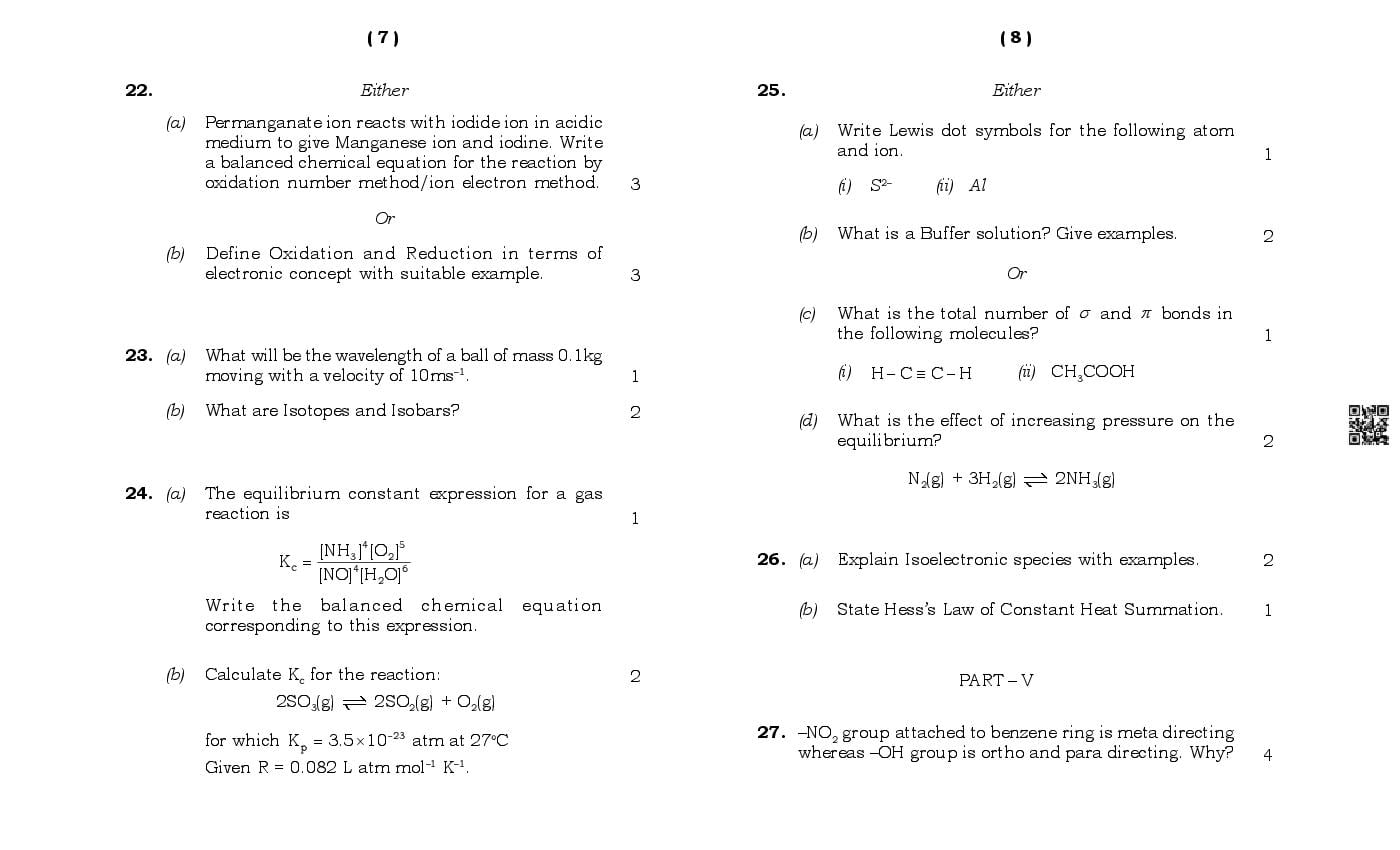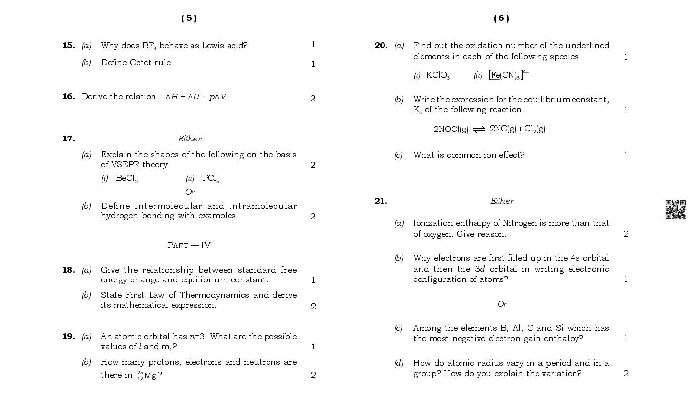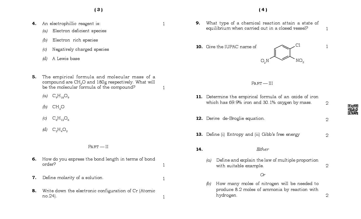 MBOSE Class 11 Sample Question Paper Chemistry View Download