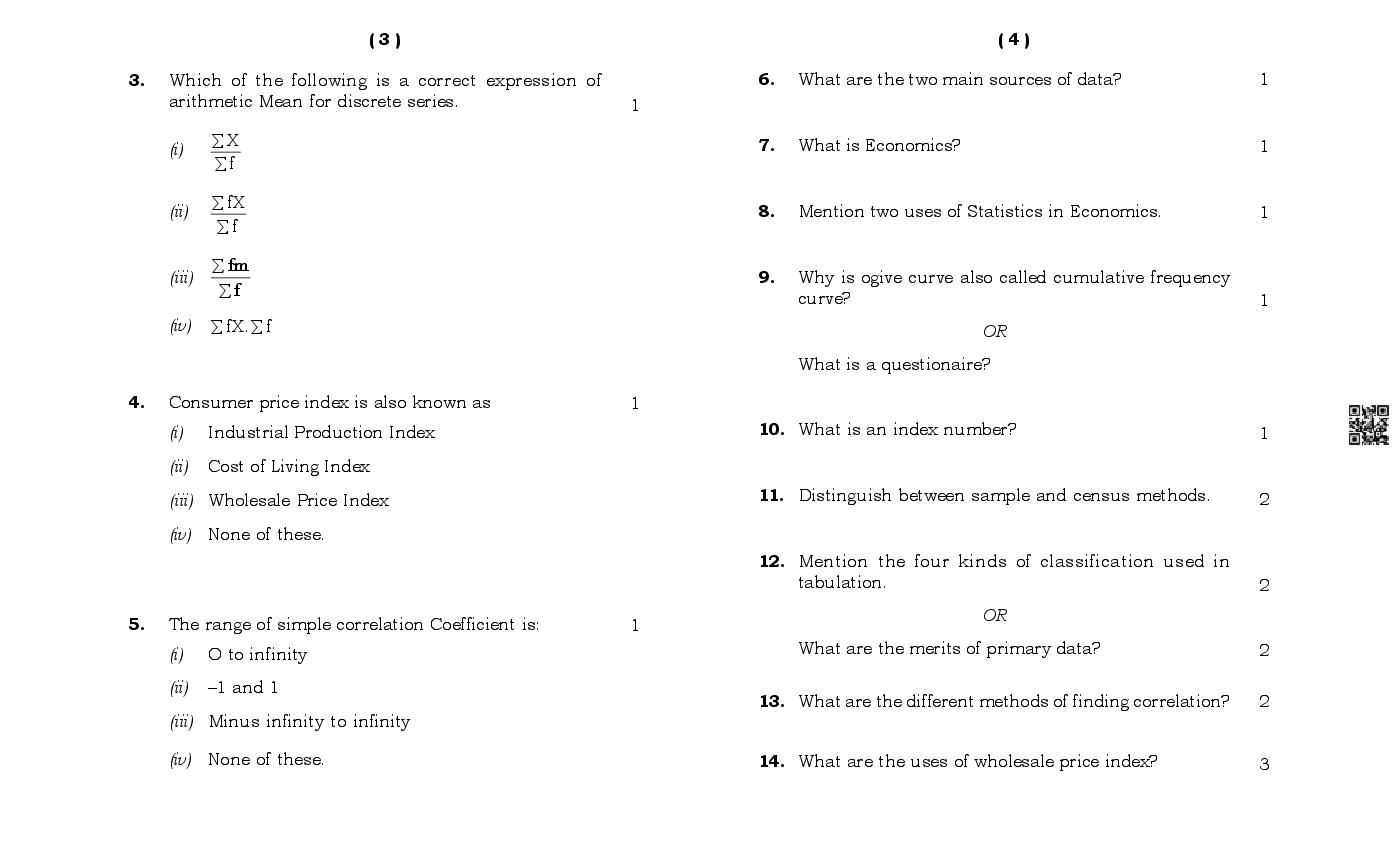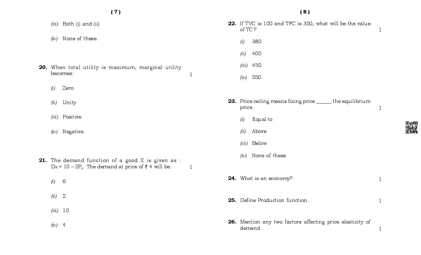 MBOSE Class 11 Sample Question Paper Economics View Download