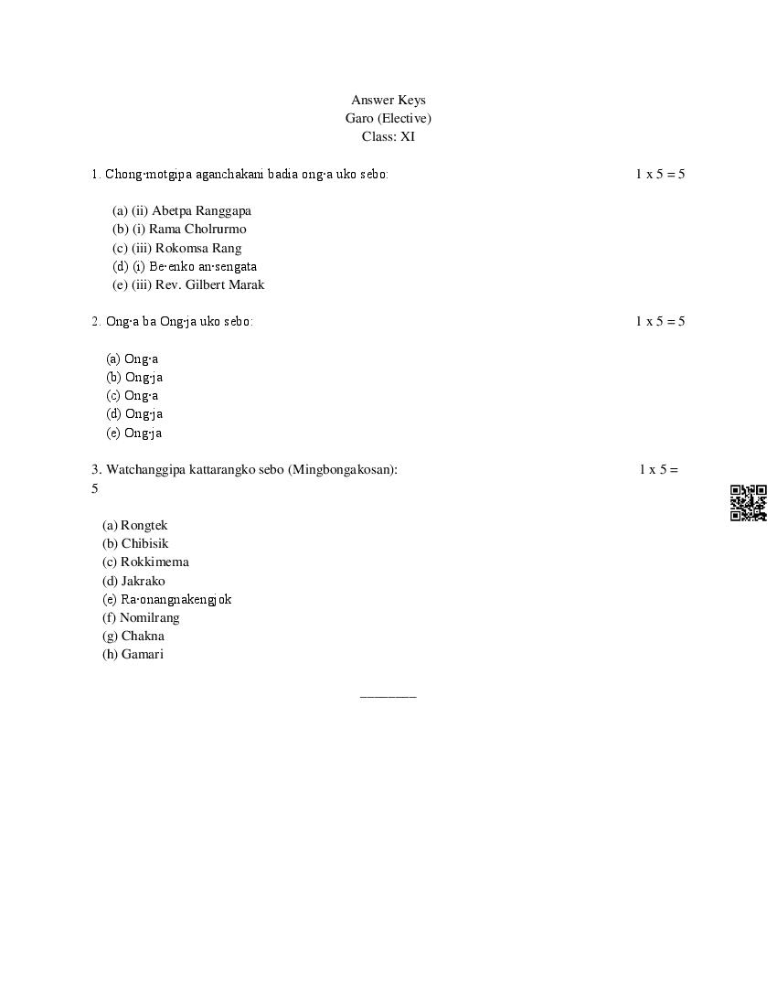 Meghalaya Board Class 11 Garo Elective