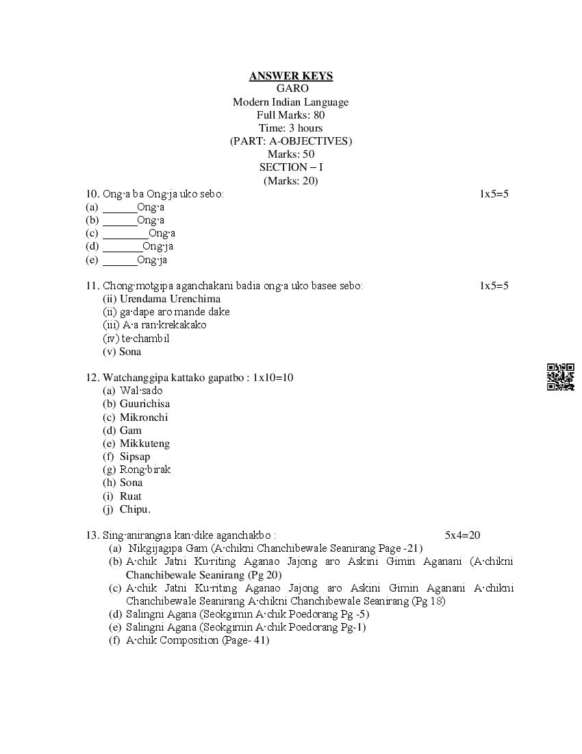 • MBOSE Class 11 Garo Question Papers – Upon completing the Garo curriculum, practice with the Meghalaya Board Class 11 previous year question papers to understand what to expect in the exam.