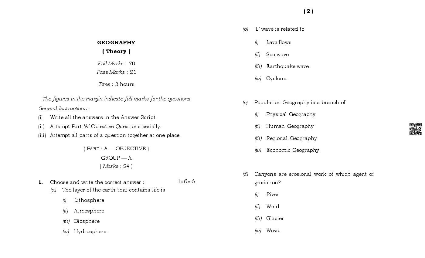 The MBOSE Sample Question Paper 2026 for Class 11 (Class 11) Geography is as follows.
