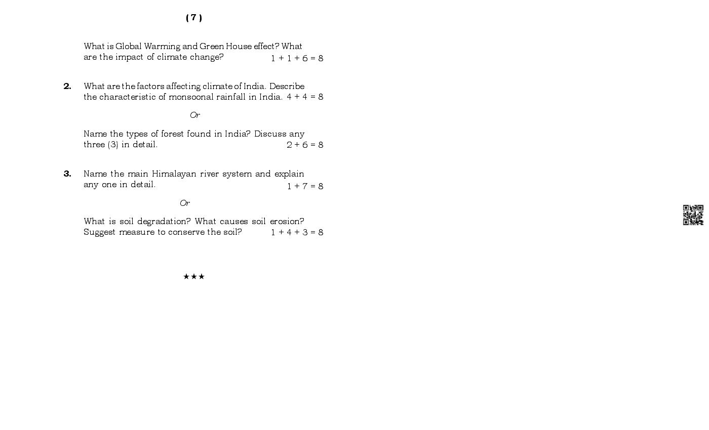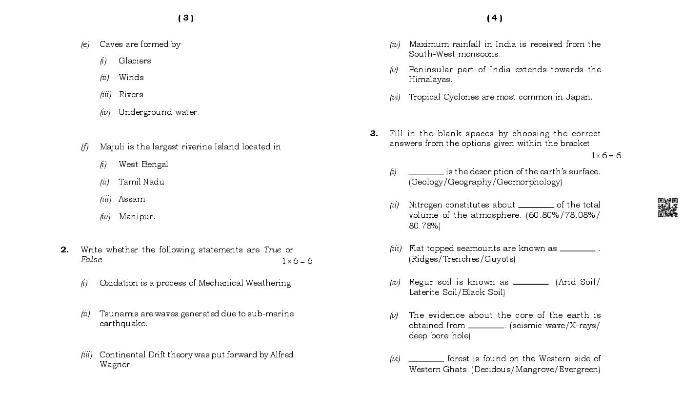 MBOSE Class 11 Sample Question Paper Geography View Download
