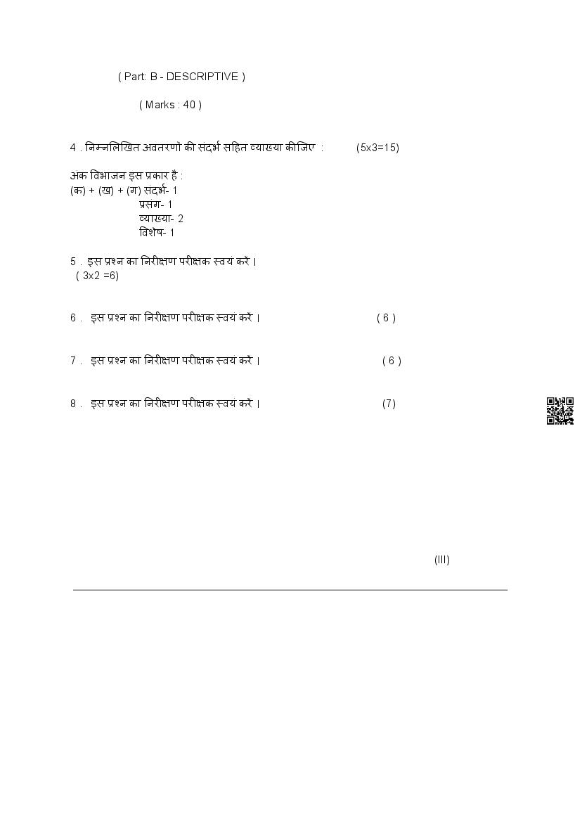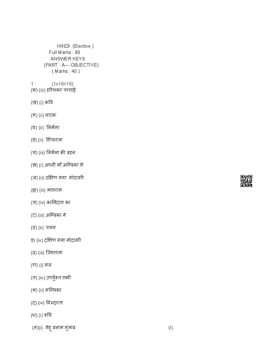 | Subject | Hindi Elective |