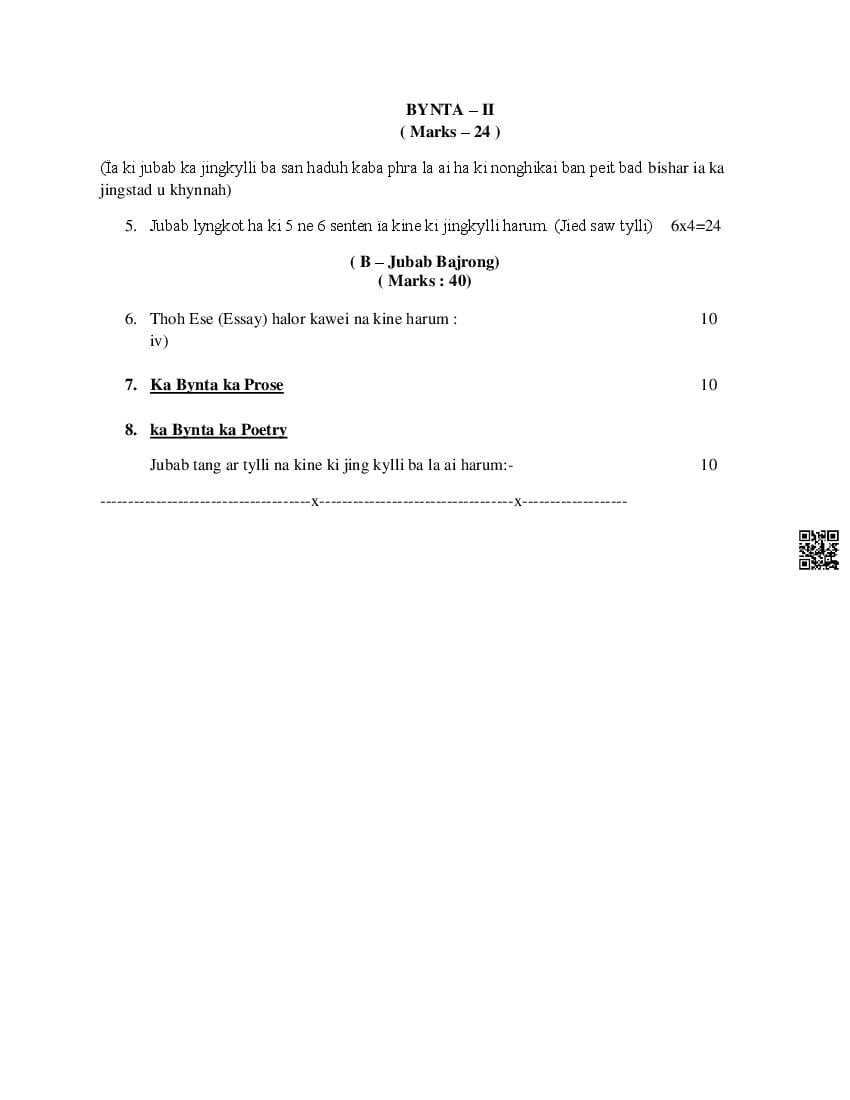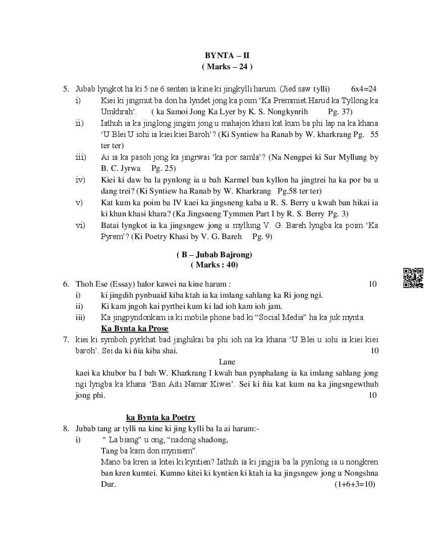 - MBOSE Class 11 Khasi Question Papers – Upon completing the Khasi curriculum, practice with the Meghalaya Board Class 11 previous year question papers to understand what to expect in the exam.