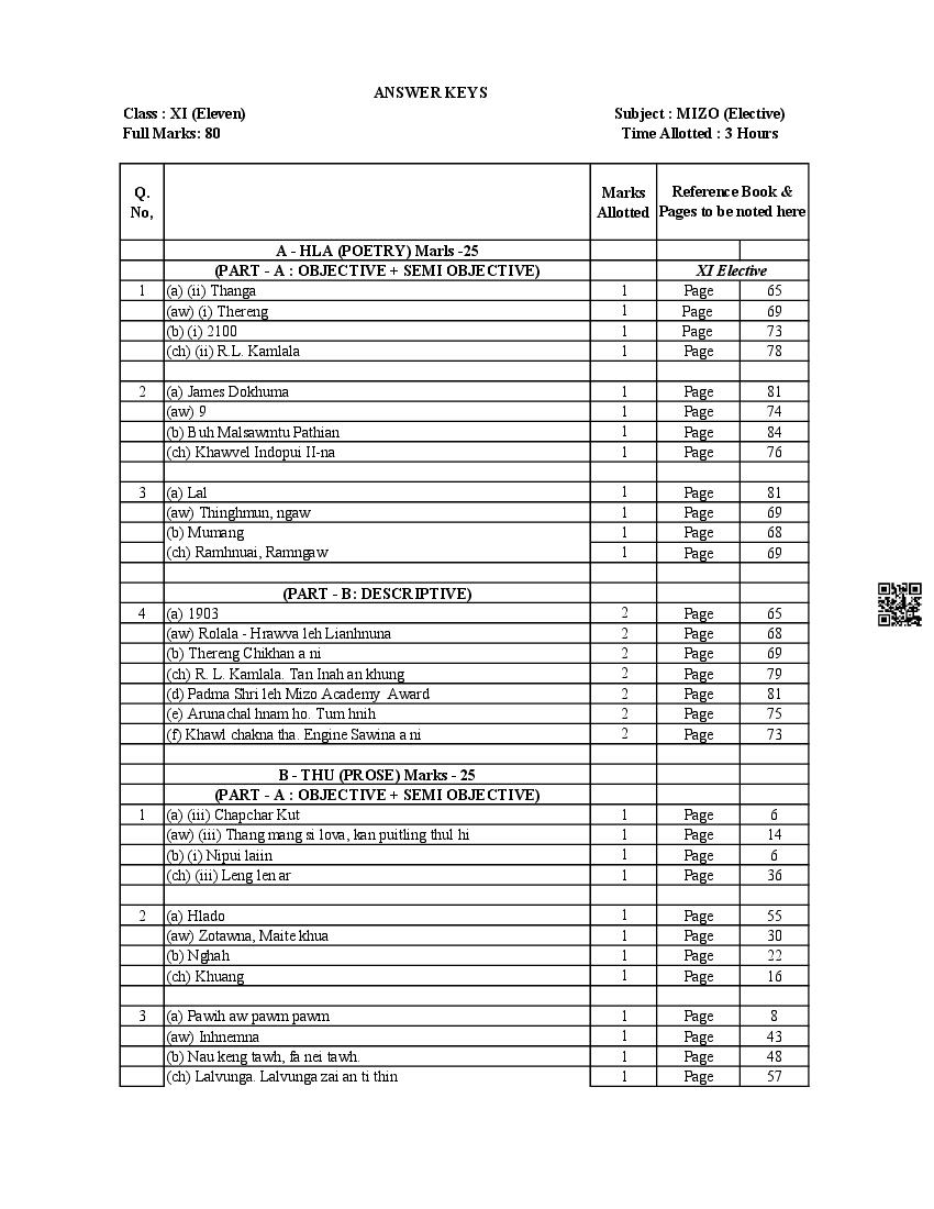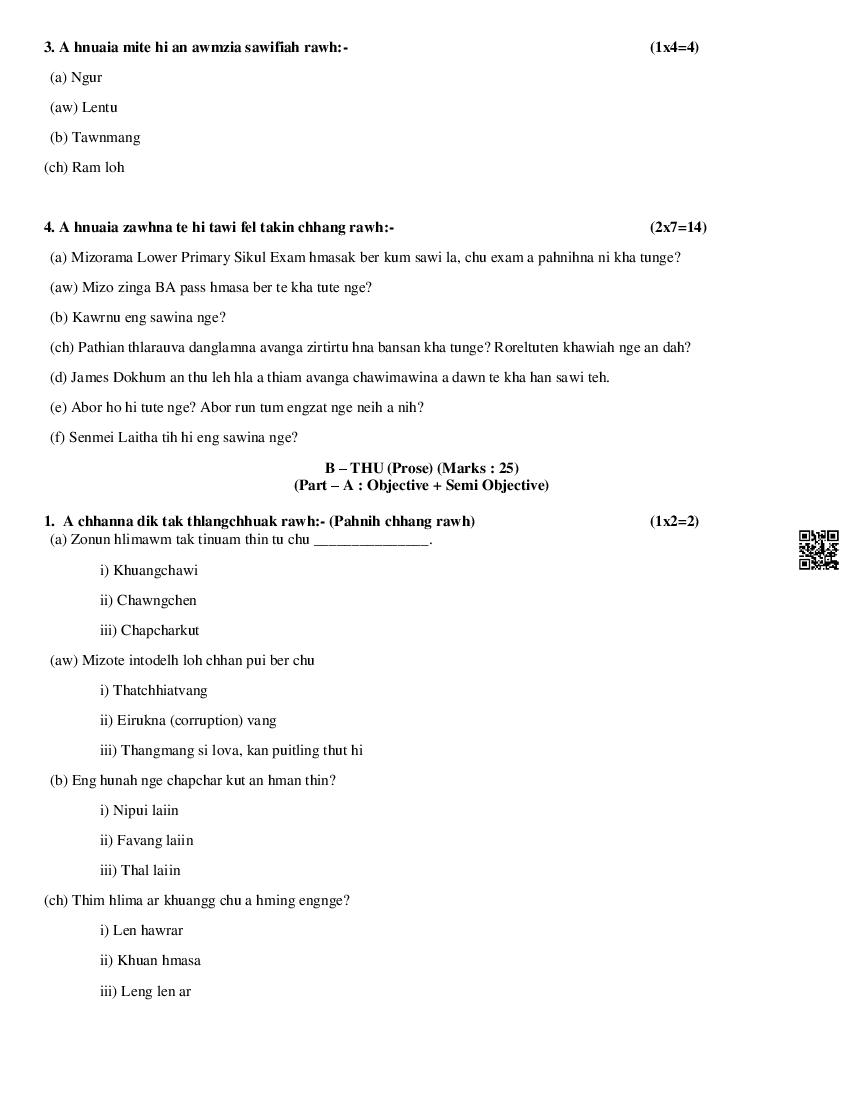 The MBOSE Sample Question Paper 2026 for Class 11 (Class 11) Mizo Elective is as follows.