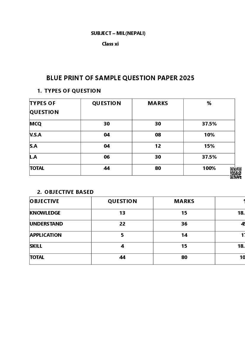 MBOSE Class XI Nepali Sample Question Paper 2026 Download Link – Click Here to Download Model Question Paper