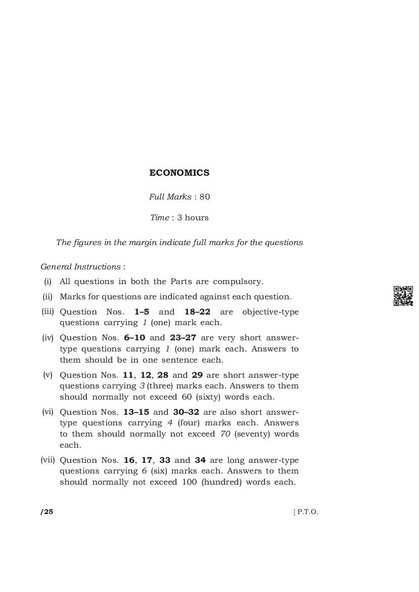 The MBOSE Sample Question Paper 2025 for HSSLC (Class 12) Economics is as follows.