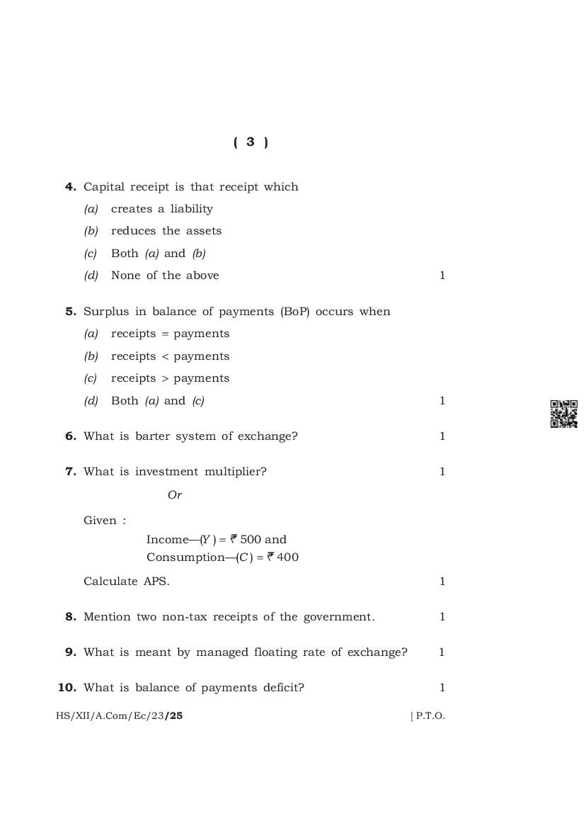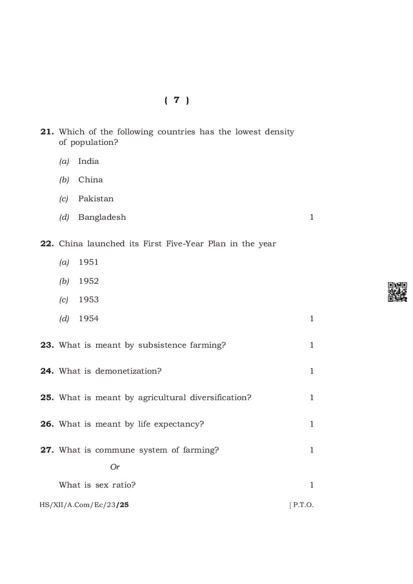 MBOSE HSSLC Economics Sample Question Paper 2025