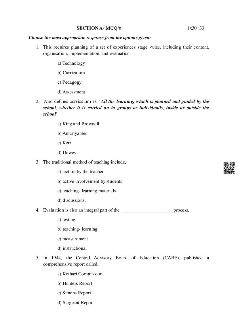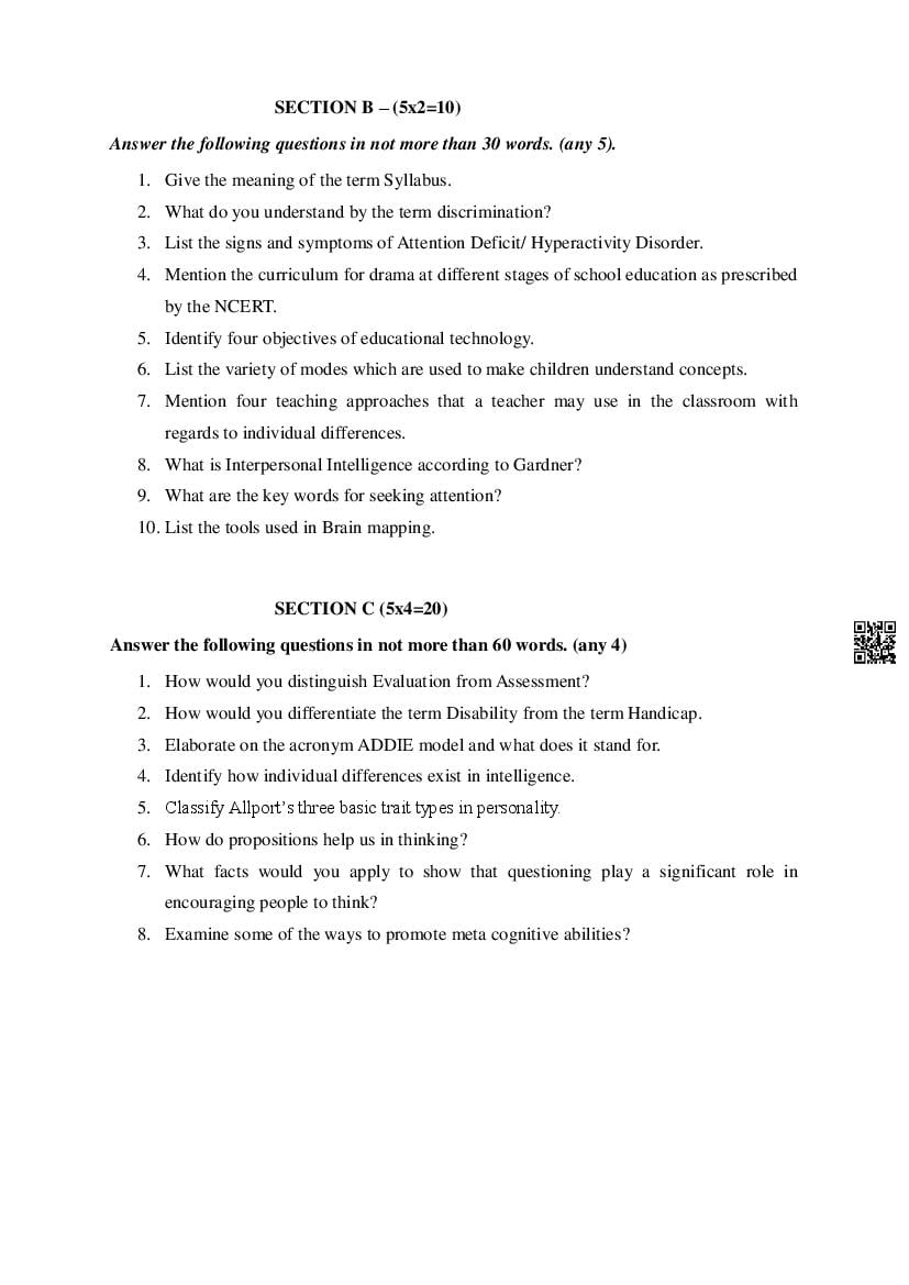MBOSE HSSLC Education Sample Question Paper 2026