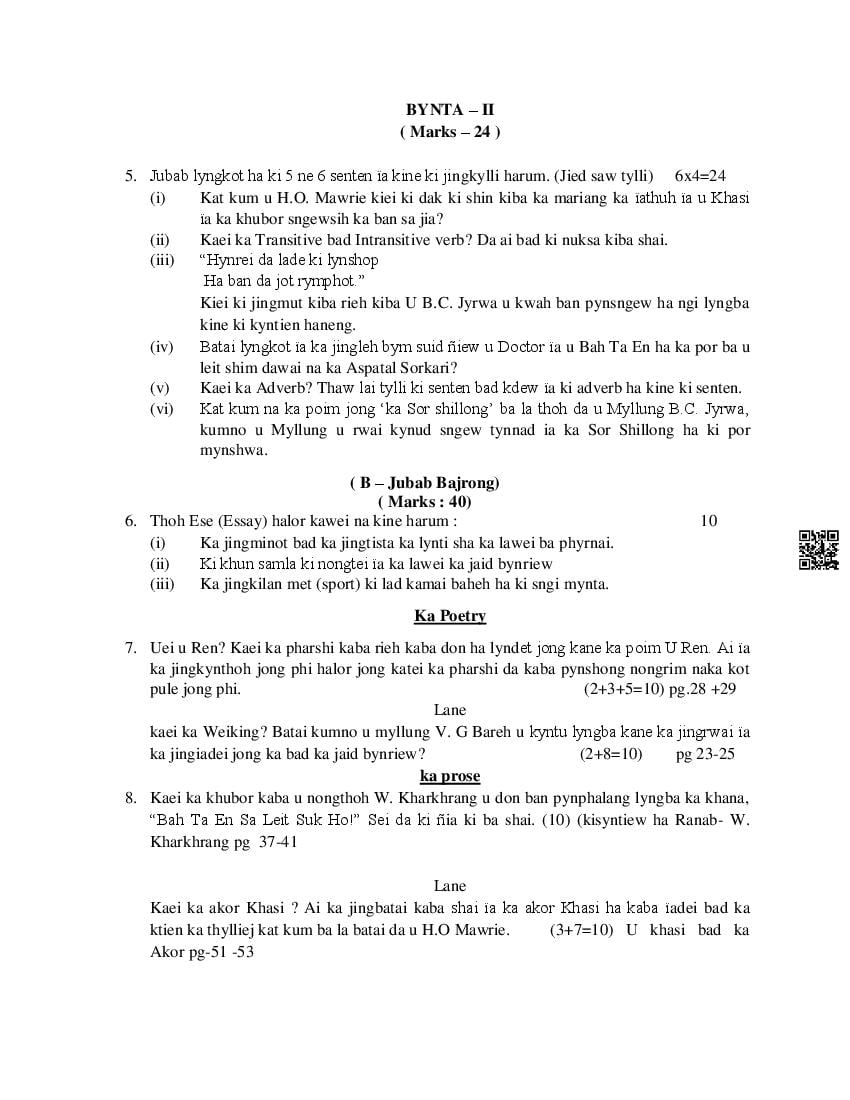 - MBOSE HSSLC Khasi Question Papers – Upon completing the Khasi curriculum, practice with the Meghalaya Board HSSLC previous year question papers to understand what to expect in the exam.