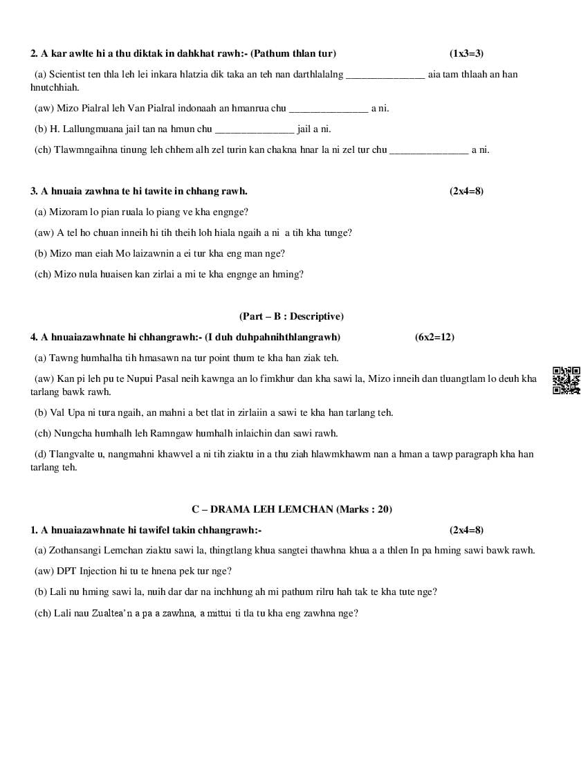 If you have any queries on MBOSE HSSLC Mizo Sample Question Paper 2026, then please ask in comments below.
