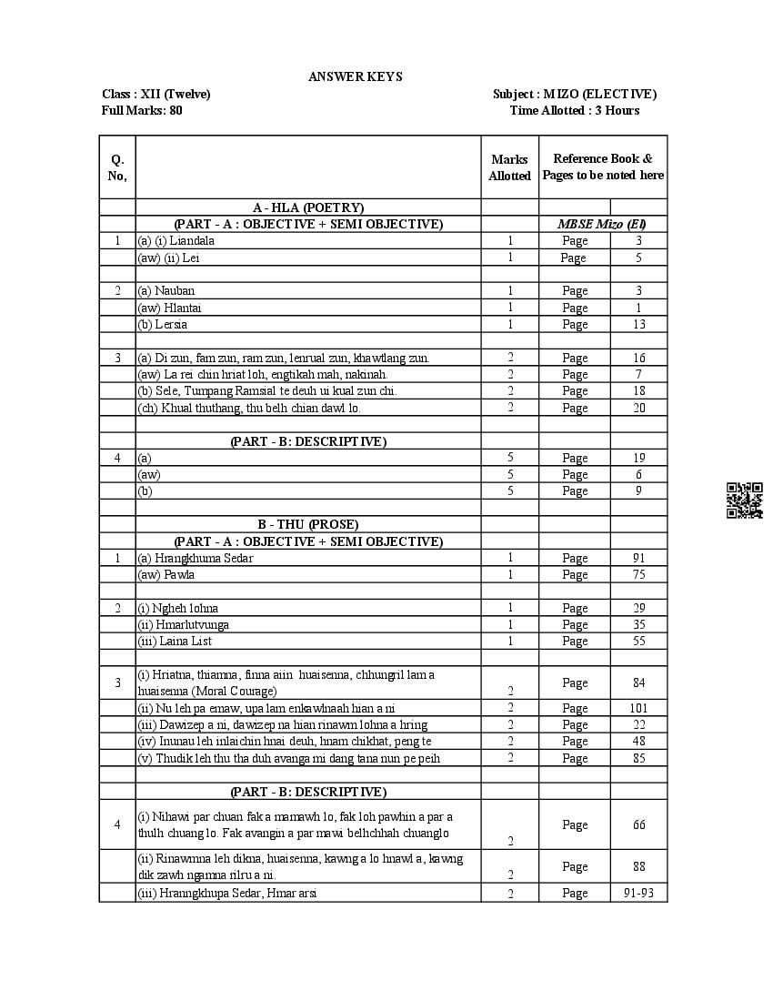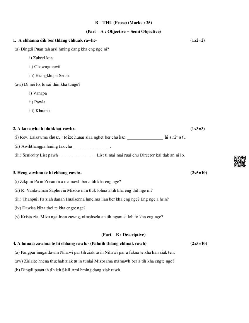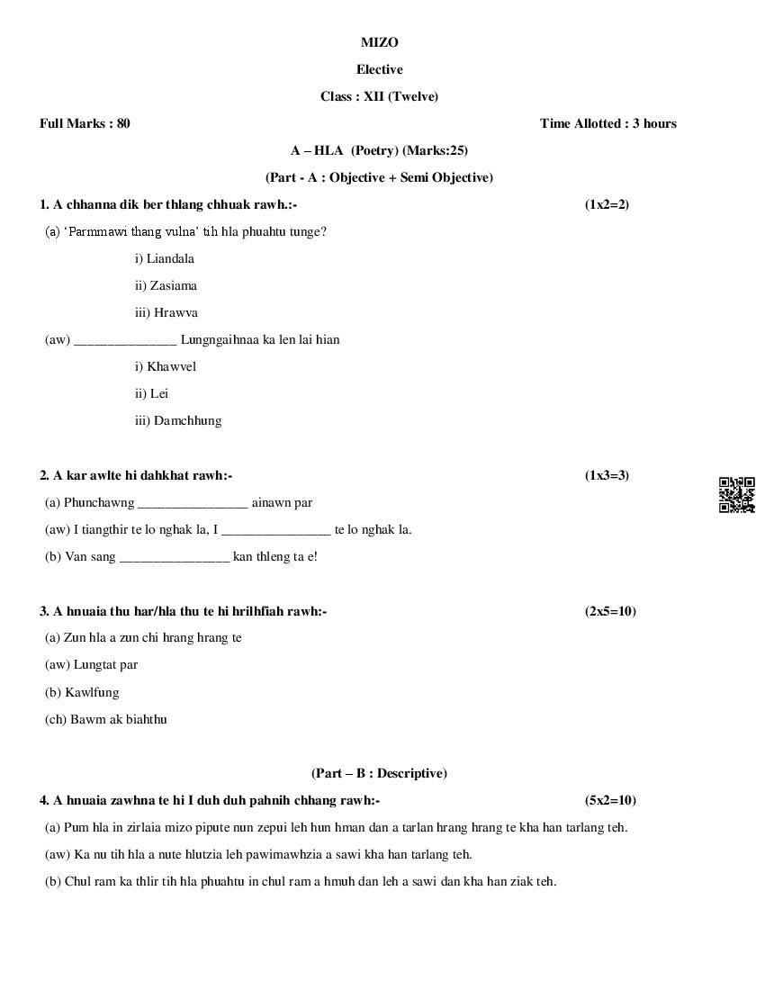 The MBOSE Sample Question Paper 2026 for HSSLC (Class 12) Mizo Elective is as follows.