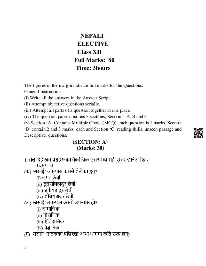 Are you looking for MBOSE HSSLC Nepali Elective Sample Question Paper 2026 with Solutions? While you can easily solve the class 12 sample papers with the MBOSE textbook of HSSLC Nepali Elective, if you need further help, you can explore solved Nepali Elective papers from coaching centers. Or comment below, and we will help you out.